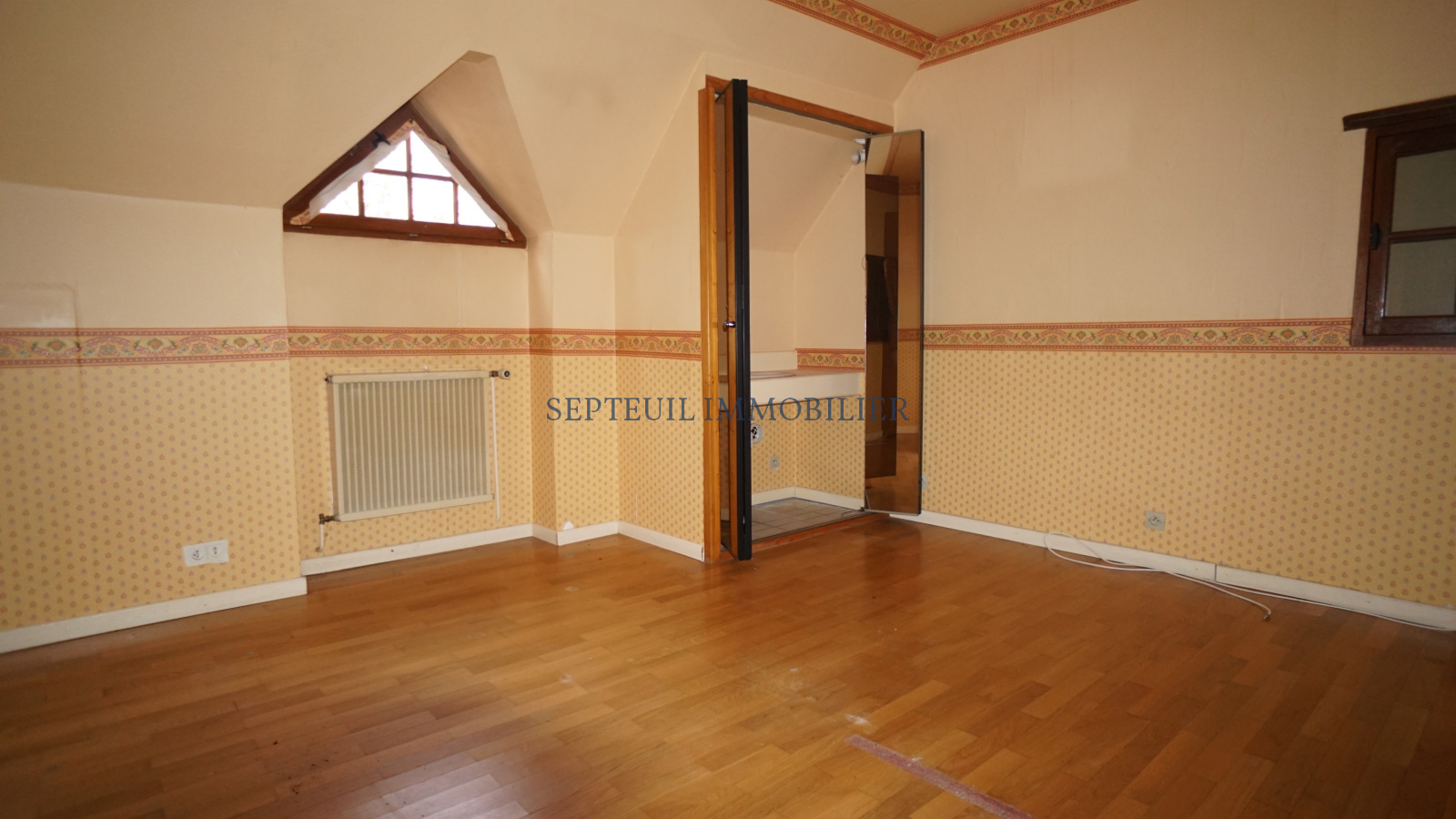 A l'étage, palier desservant 3 chambres dont une avec un point d'eau, dressing, salle de douche avec wc.