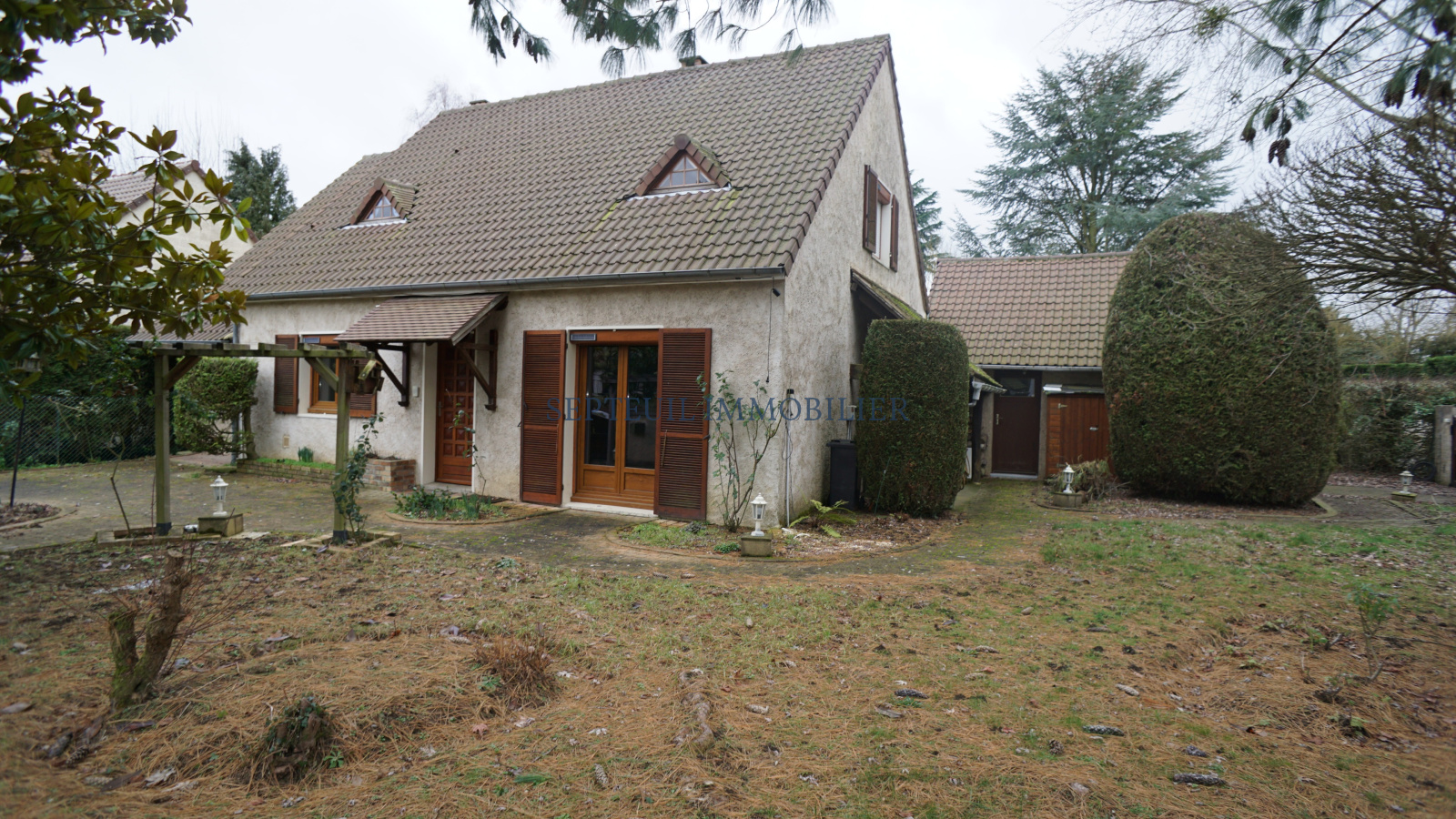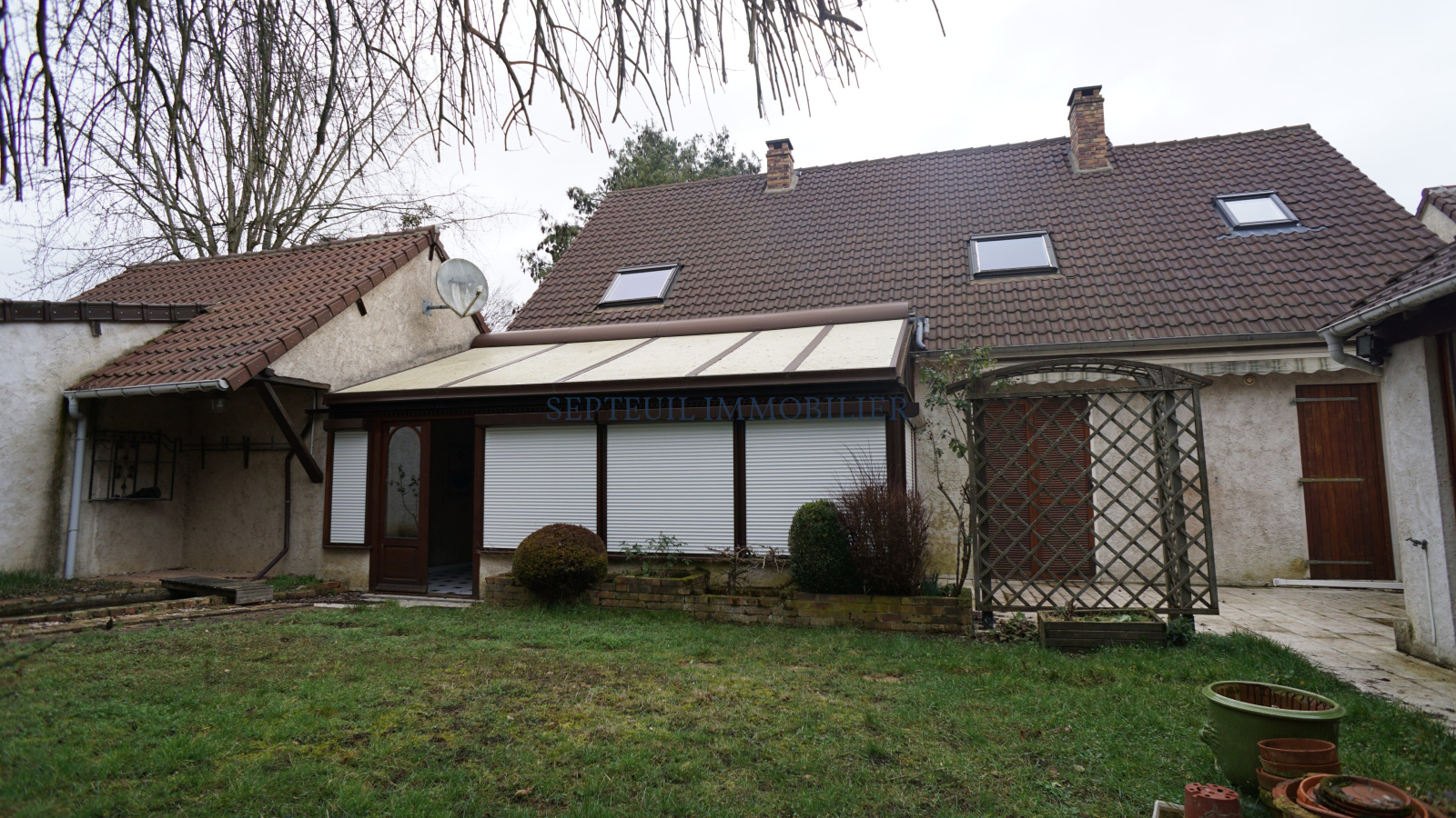 Grand garage attenant, cuisine d'été en annexe, beau terrain de 1400m² clos. Au calme, proche N12.