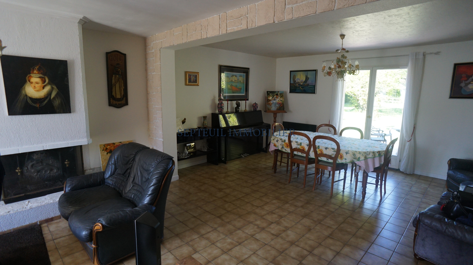 Au rez-de-chaussée : Entrez dans une belle pièce de vie traversante et lumineuse avec cheminée (insert) de 41m², découvrez une cuisine dînatoire de 14m² (cuisine ouverte possible) de plain pied sur la terrasse côté jardin, ainsi qu'une chambre avec sa salle de douche attenante, (WC séparés).