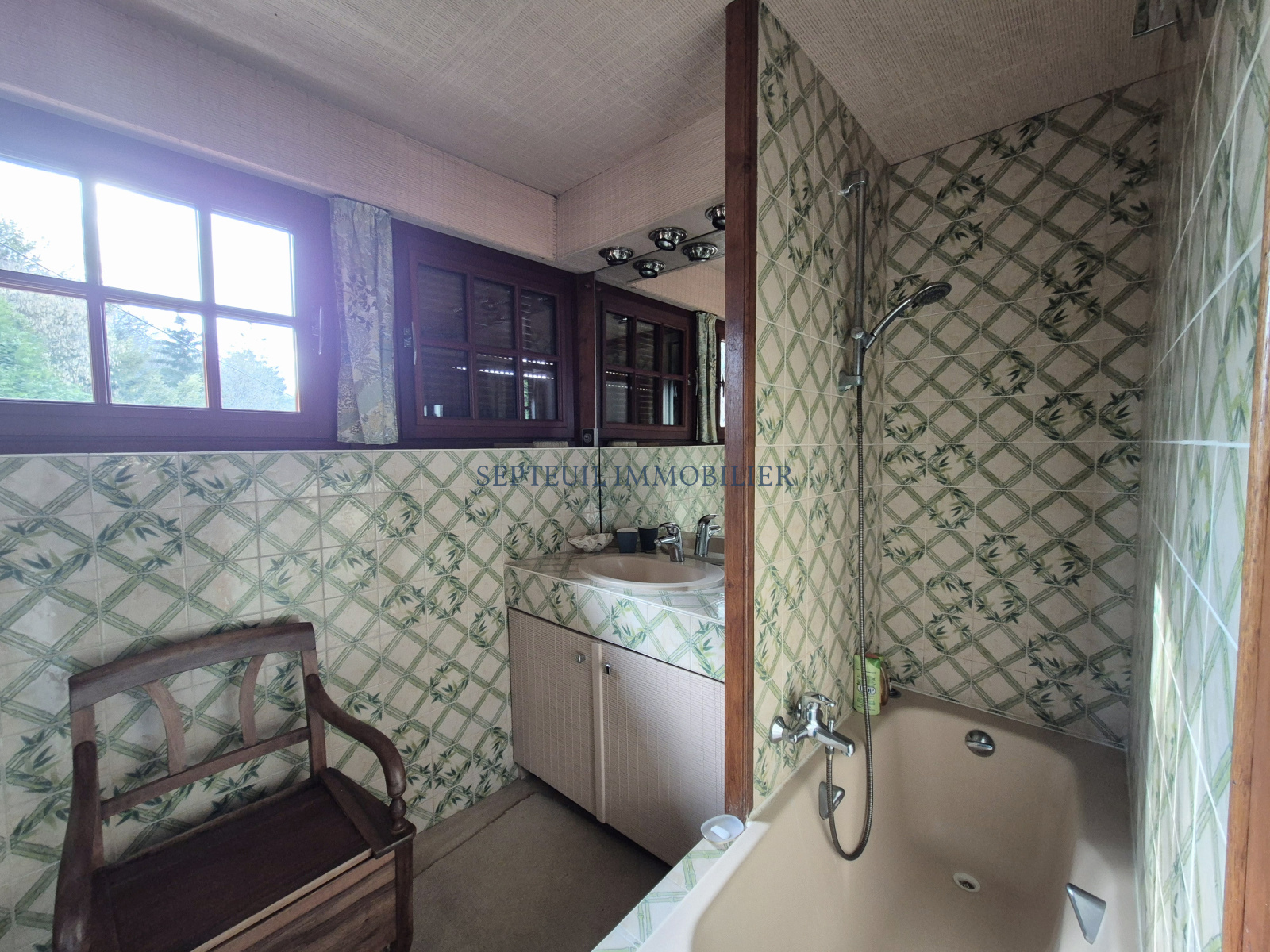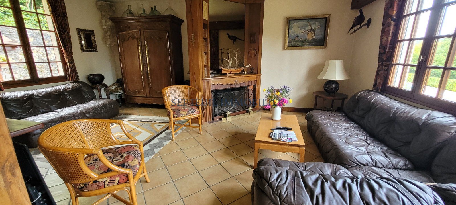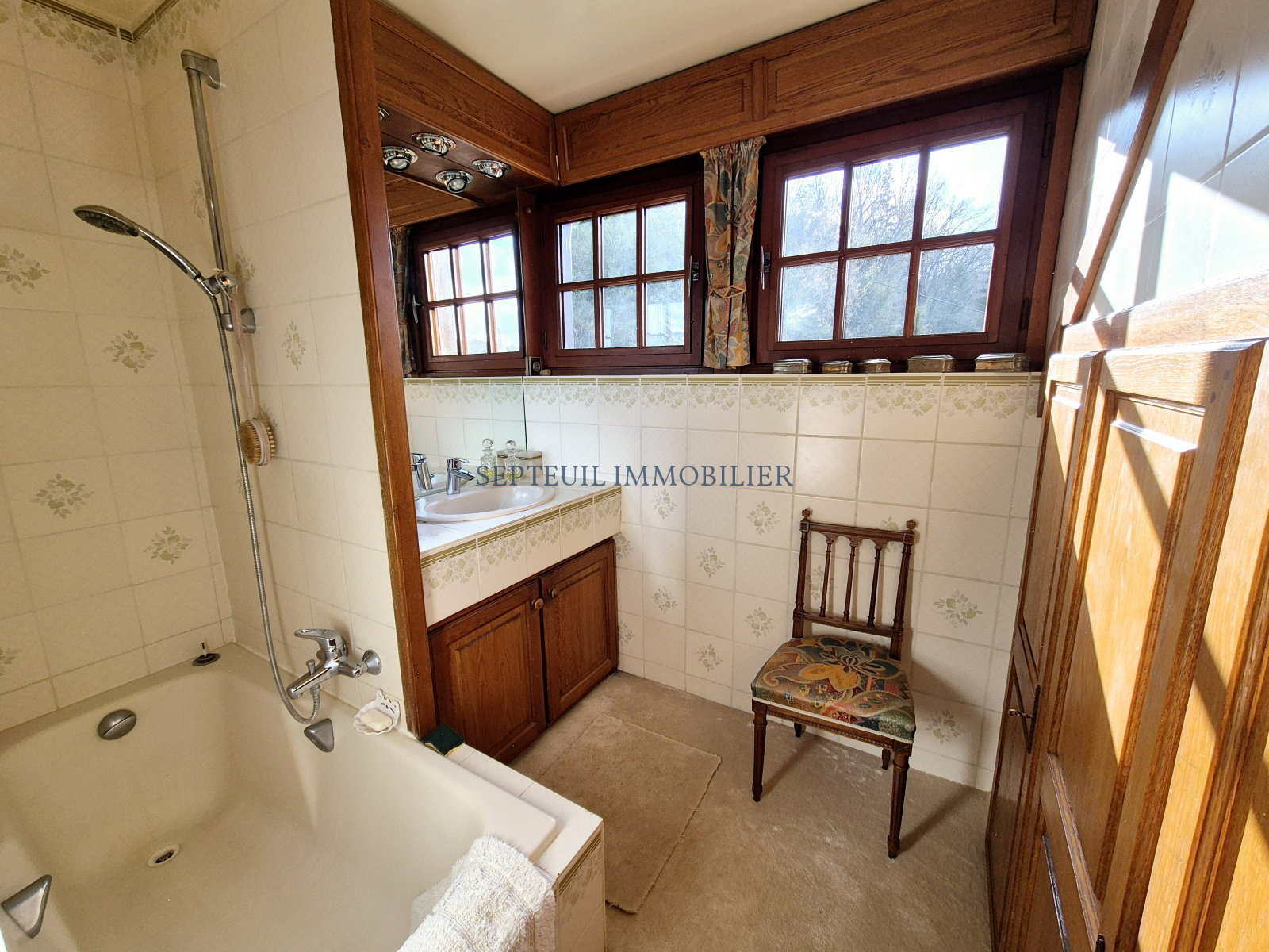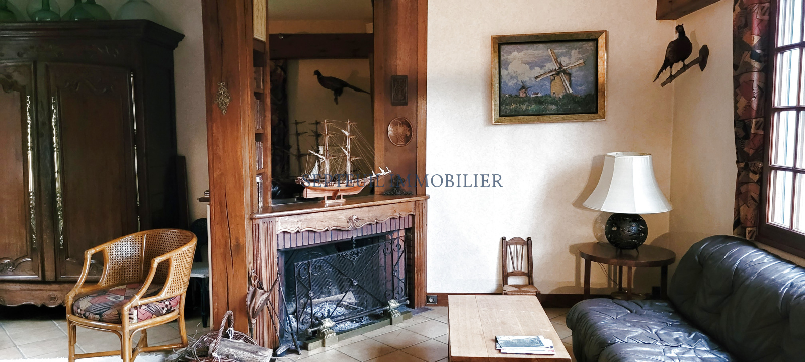 - Au rez-de-chaussée séjour double avec cheminée, salle à manger, cuisine indépendante équipée avec accès jardin. Wc..