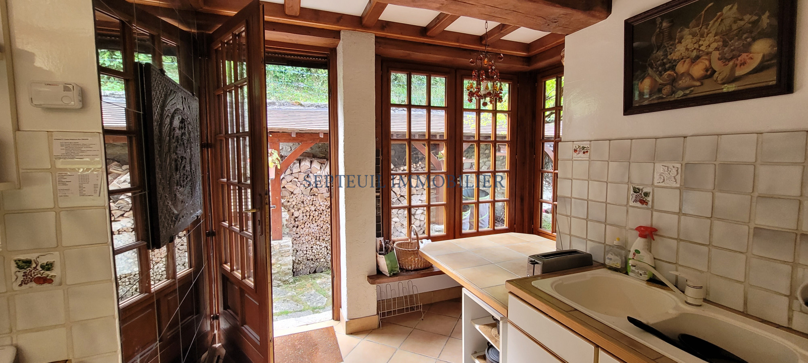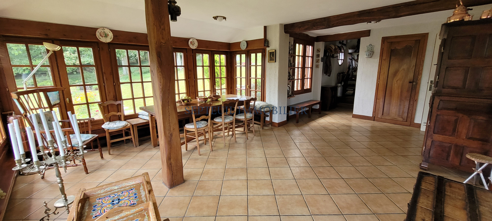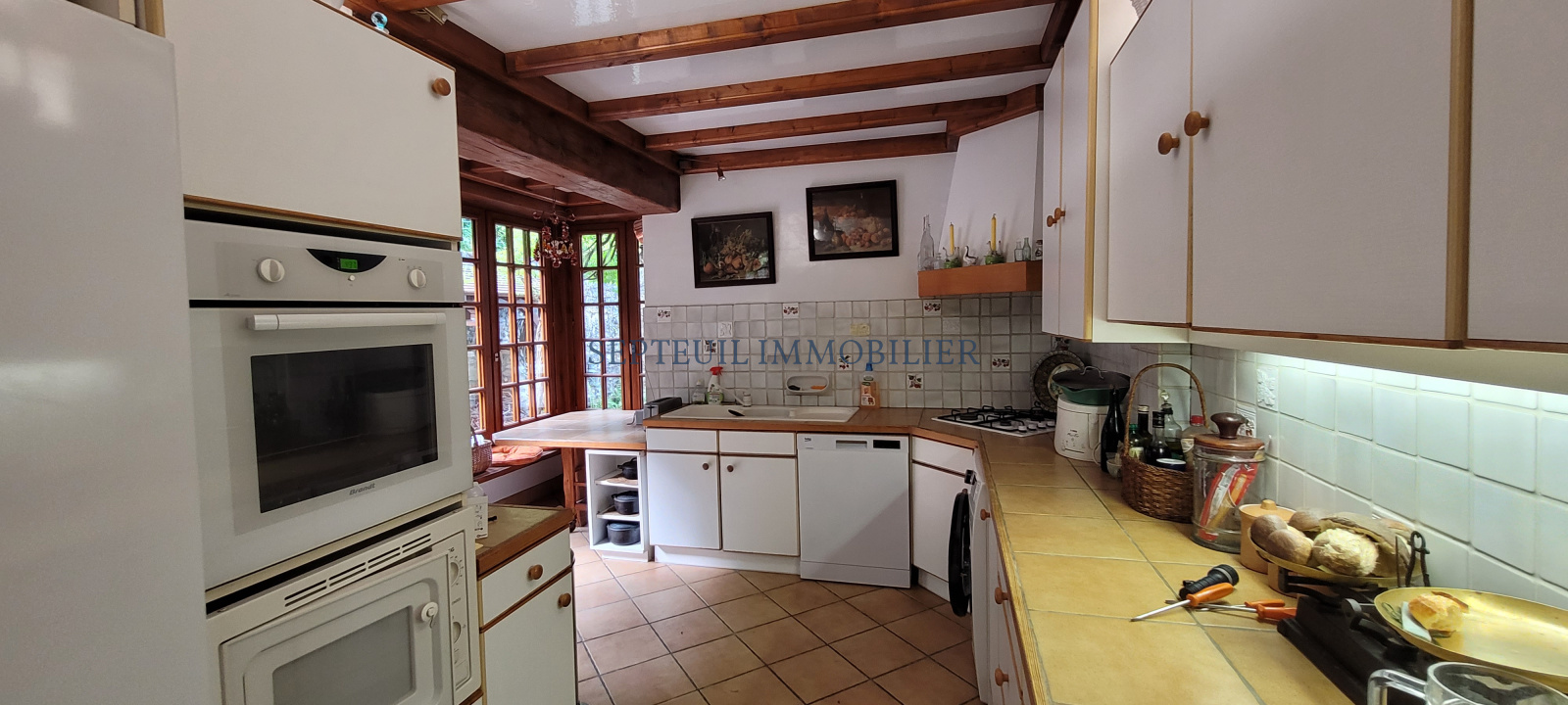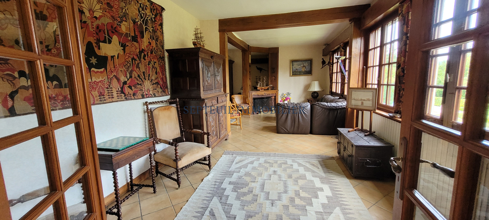 - Au rez-de-chaussée séjour double avec cheminée, salle à manger, cuisine indépendante équipée avec accès jardin. Wc..