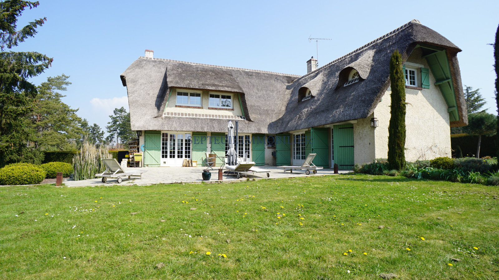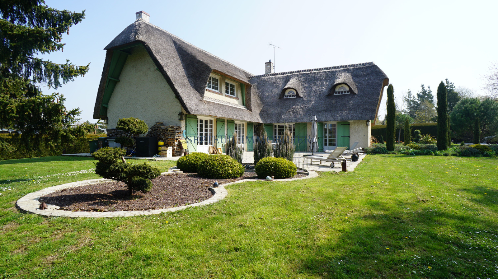 Superbe chaumière restaurée avec goût offrant de très belles prestations et un cadre verdoyant.