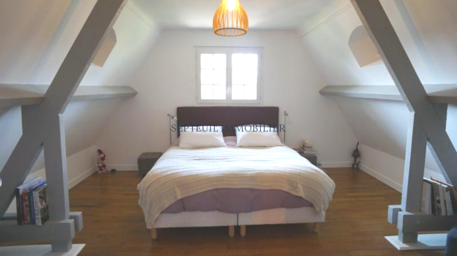 A l'étage : un palier distribue 4 belles chambres, un bureau, deux salle de bains et de douche, WC séparés.