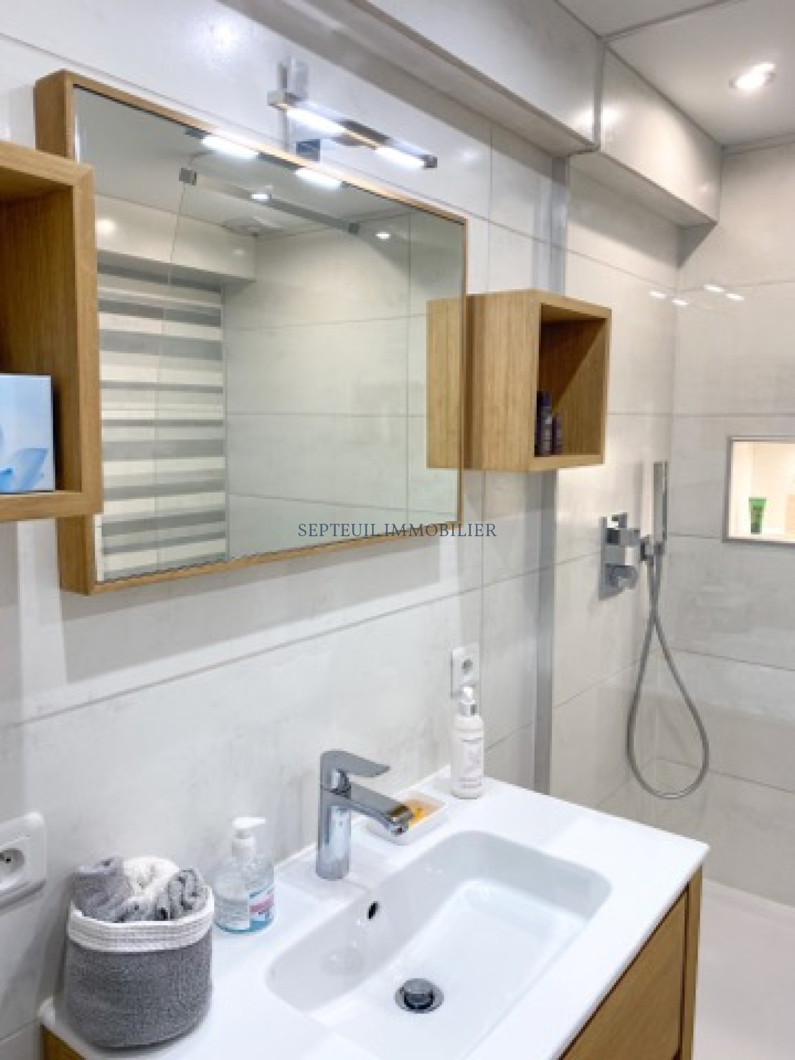 Sous-sol total de 140m² avec double garage, cave, buanderie, salle de sport et sauna, salle de douche et WC.