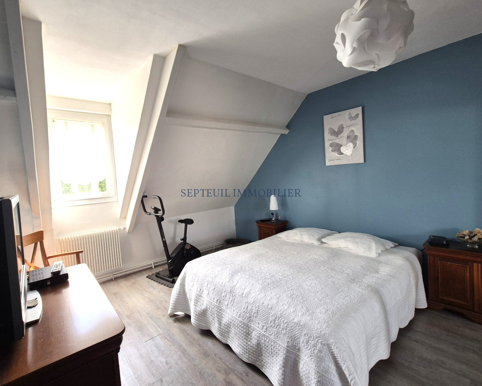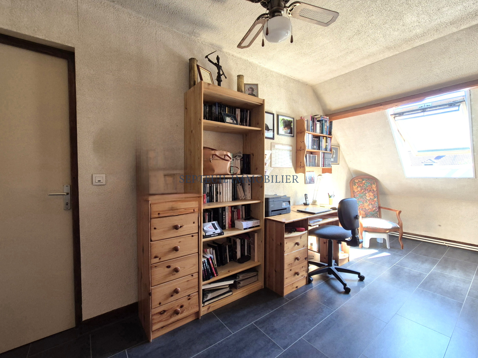 - A l'étage, grand palier faisant office de bureau, une chambre, salle de douche, wc. Deux grands greniers aménageables (36 et 20 m² env).