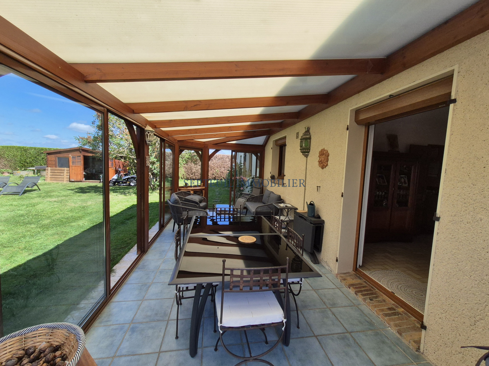 - Au rez-de-chaussée entrée, séjour double avec cheminée (insert), cuisine dinatoire équipée. Deux chambres de plain-pied, salle de douche, wc séparés. Accès garage et buanderie depuis la maison, véranda ou jardin d'hiver.