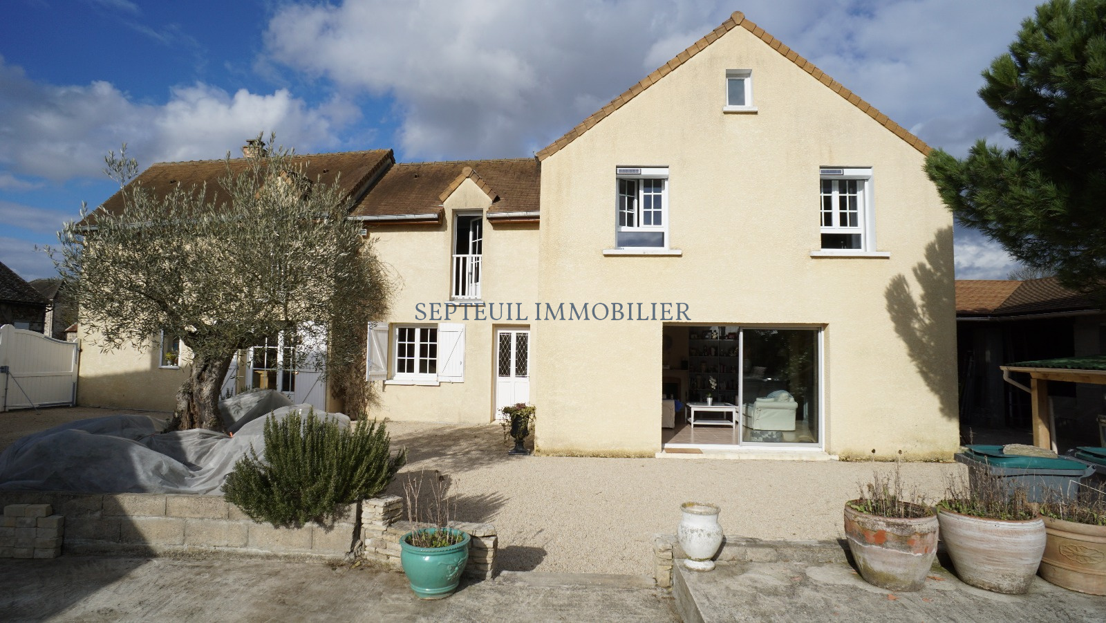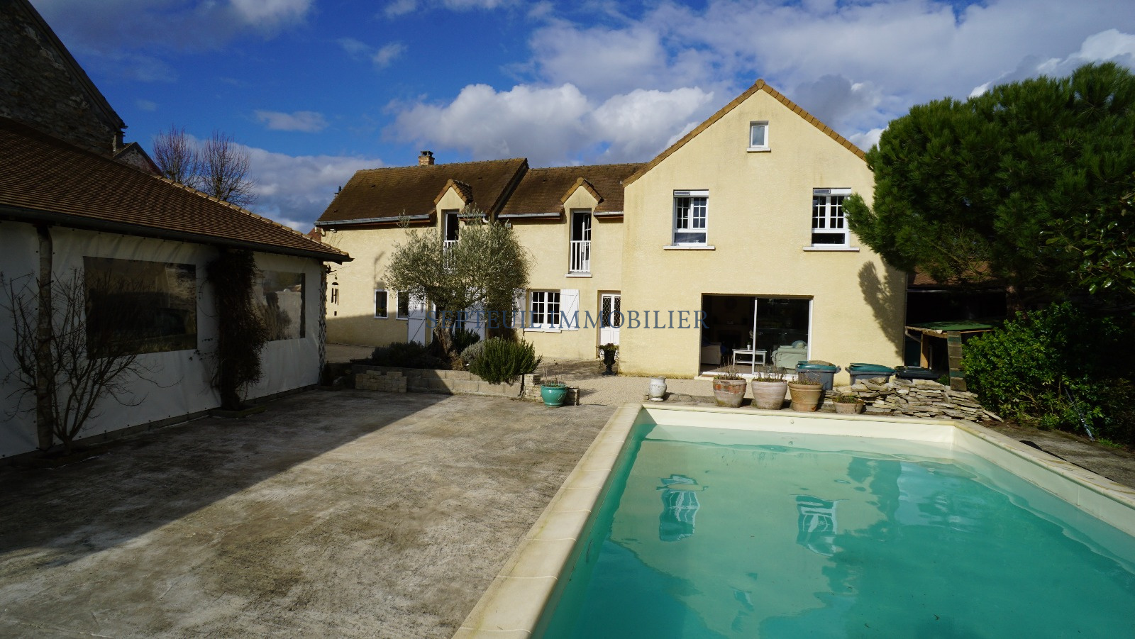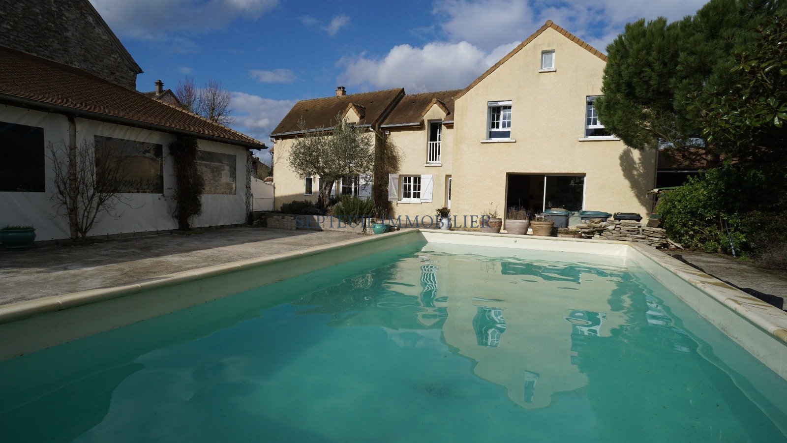 Septeuil proche : beaucoup de lumière et des prestations de qualité pour cette maison édifiée sur 1100m² de terrain clos. Grand hall d'entrée avec vestiaire, salon avec cheminée, vaste cuisine dînatoire aménagée et équipée, 3/4 chambres, salle de bains, salle de douche, 2 wc. Cellier. piscine 8X4, pool house, ateliers, garage.