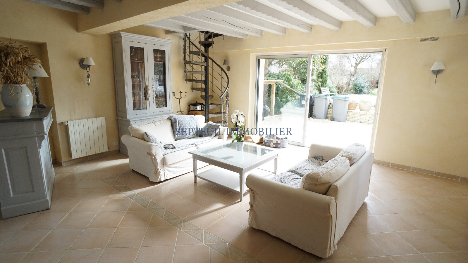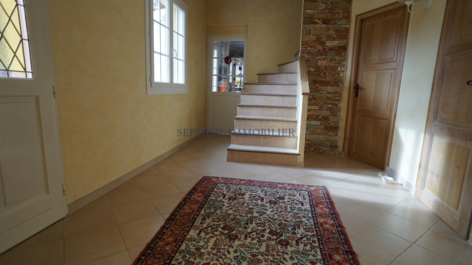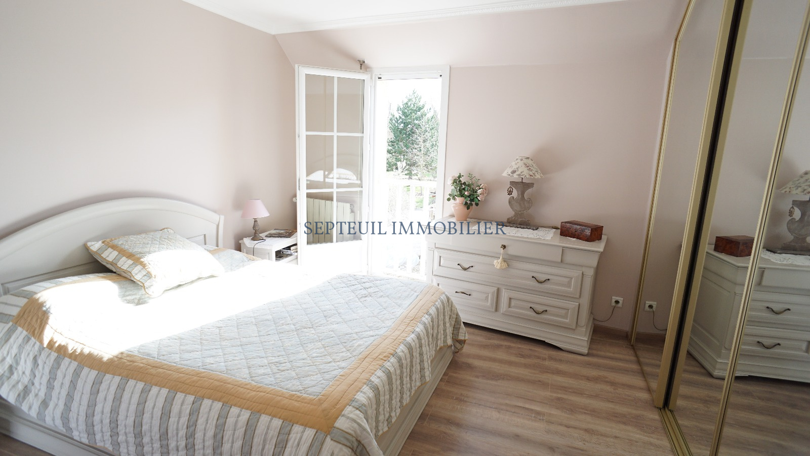 Septeuil proche : beaucoup de lumière et des prestations de qualité pour cette maison édifiée sur 1100m² de terrain clos. Grand hall d'entrée avec vestiaire, salon avec cheminée, vaste cuisine dînatoire aménagée et équipée, 3/4 chambres, salle de bains, salle de douche, 2 wc. Cellier. piscine 8X4, pool house, ateliers, garage.
