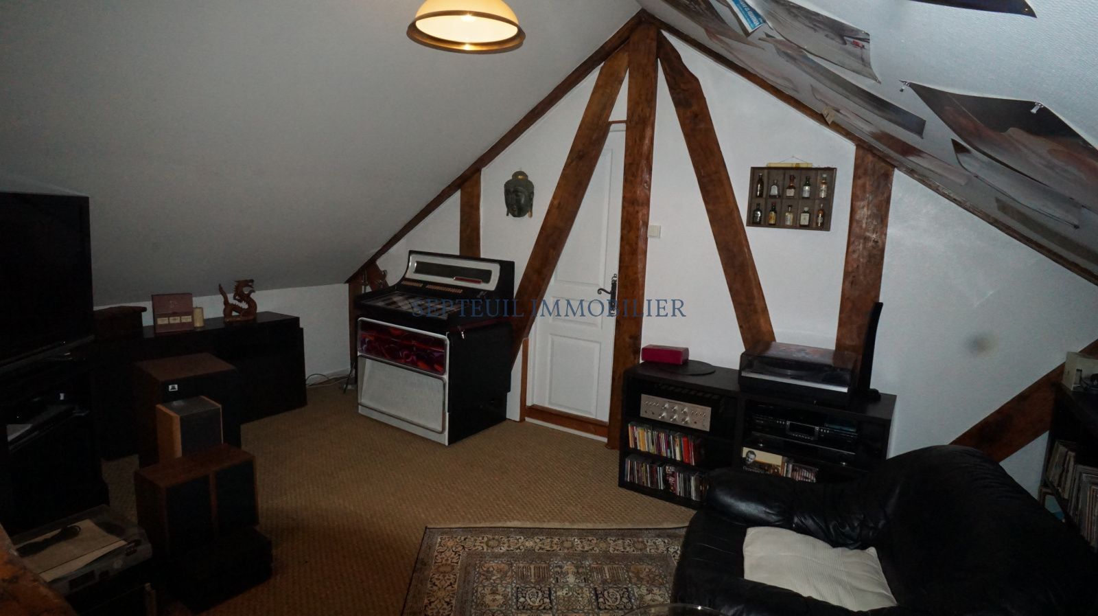 A l'étage : palier mezzanine avec petit coin salon, 2 chambres, salle de douche avec wc et une pièce aménageable en chambre.