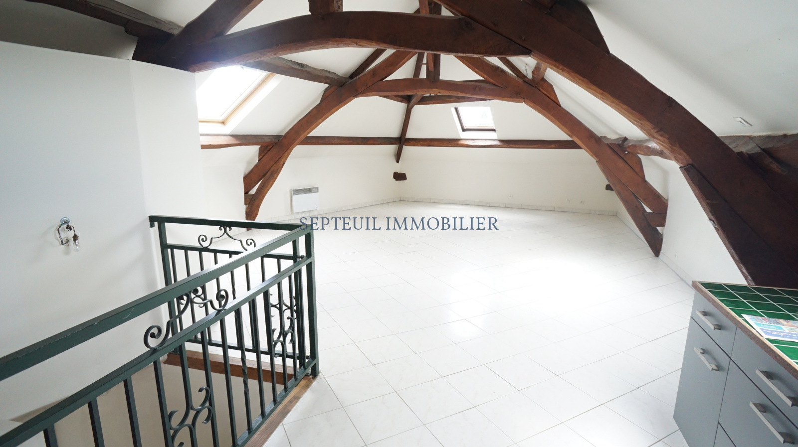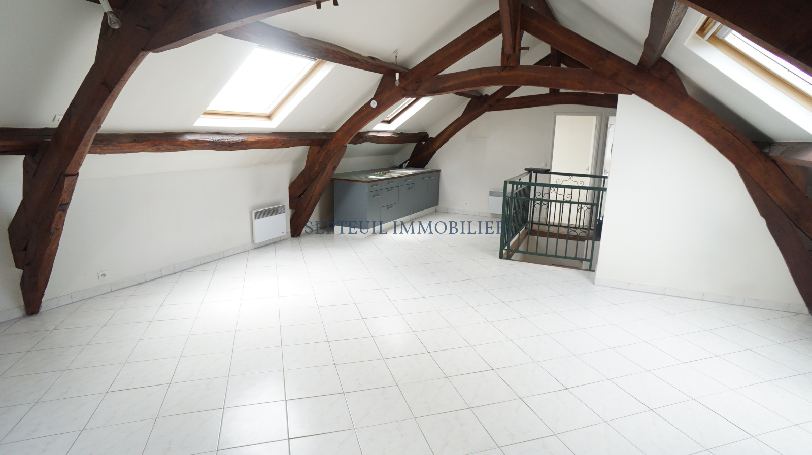 -Au 2ème : un grand F2 composé d'un séjour avec cuisine us, une chambre et salle de bains avec wc.