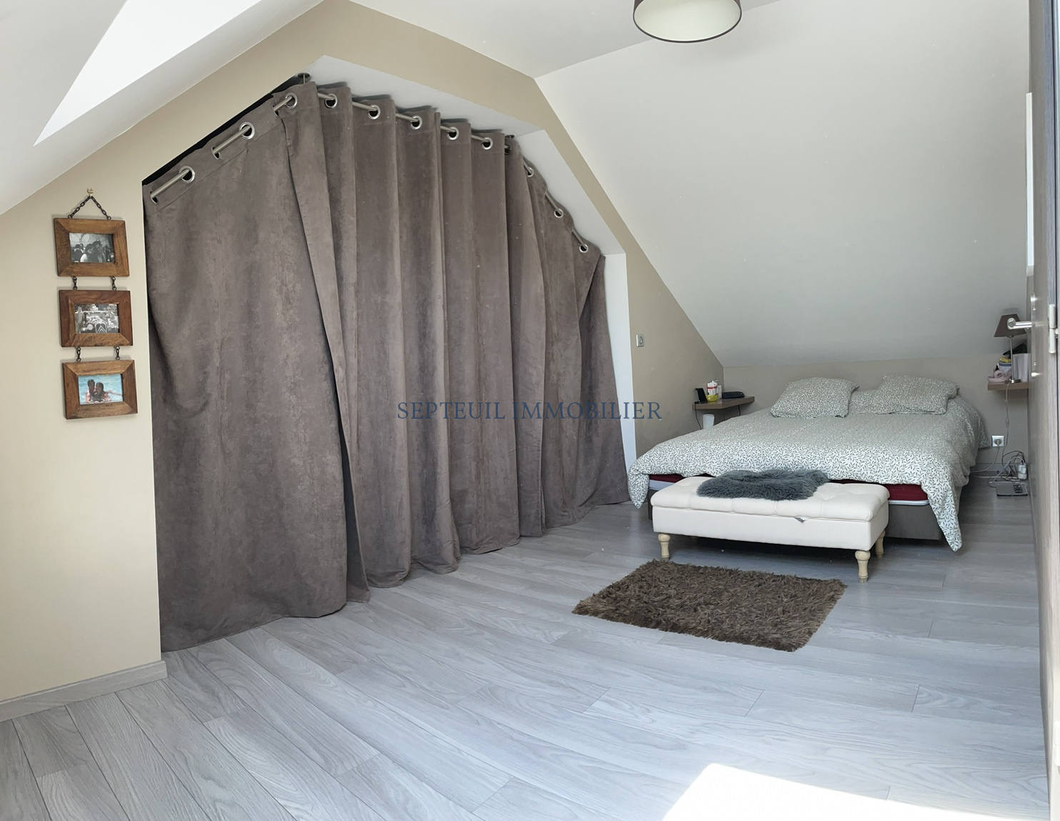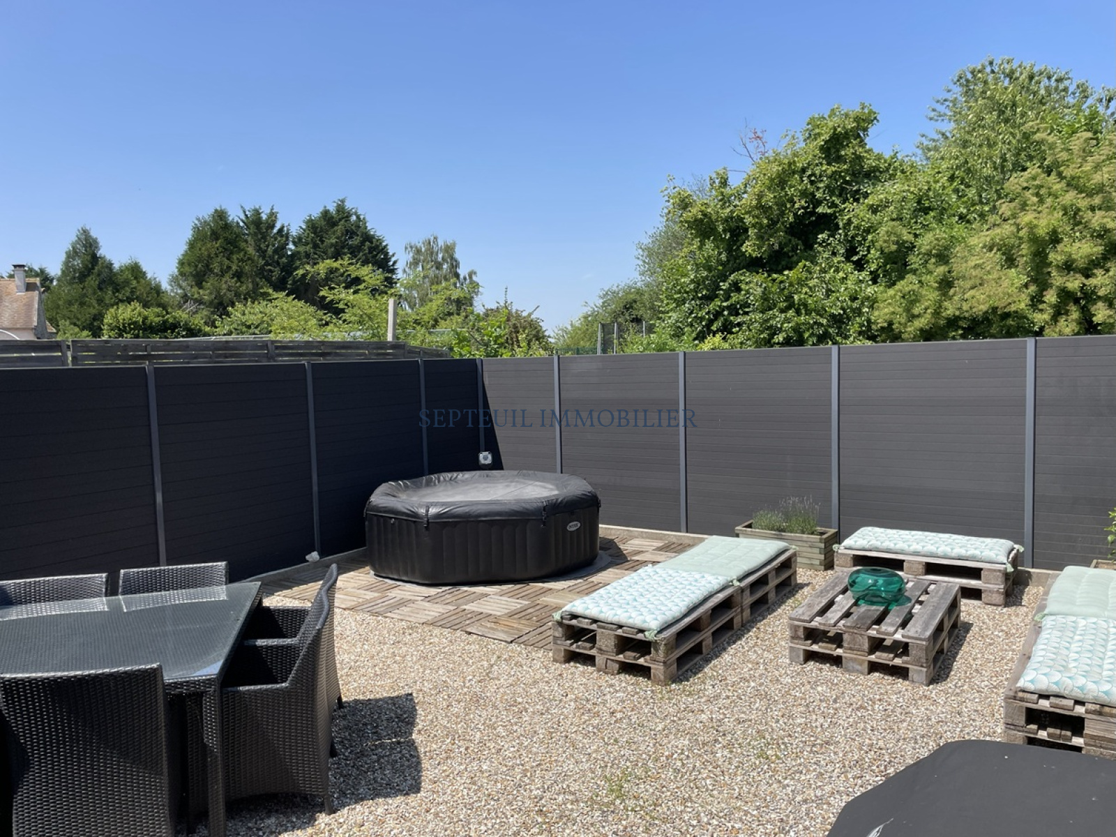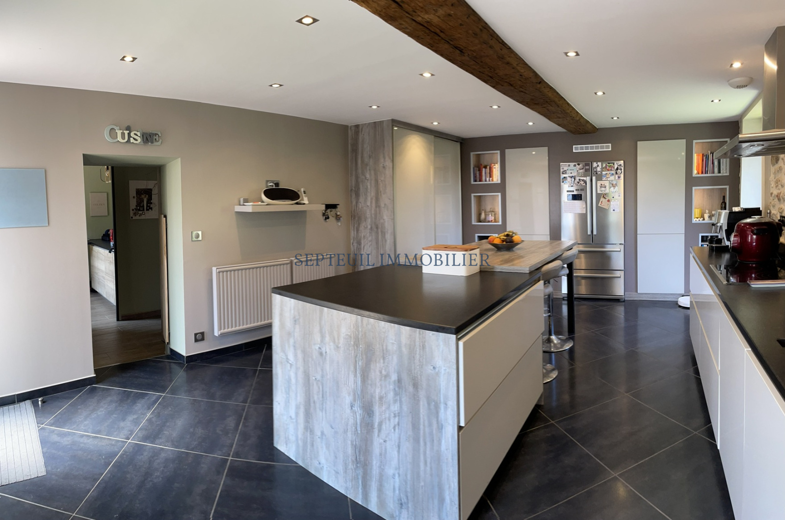 THOIRY Près. Dans le village d'Arnouville-Les-Mantes, au calme, en fond d'impasse sans vis-à-vis, longère rénovée d'environ 145 m² habitables (182 utiles) sur 465 m², comprenant :