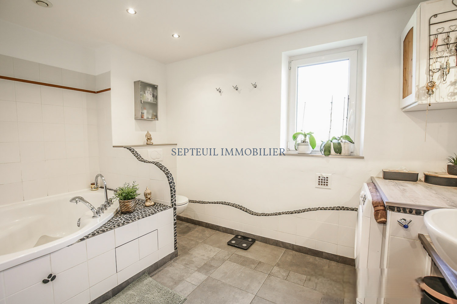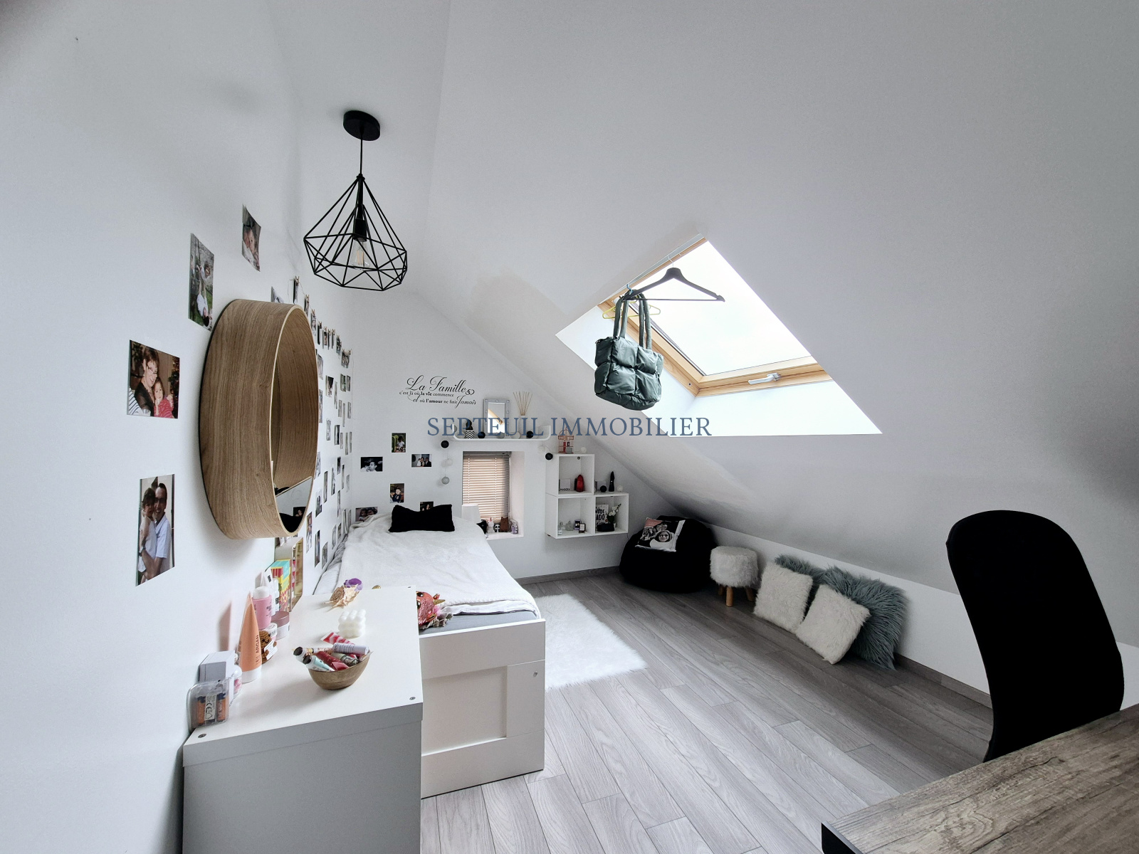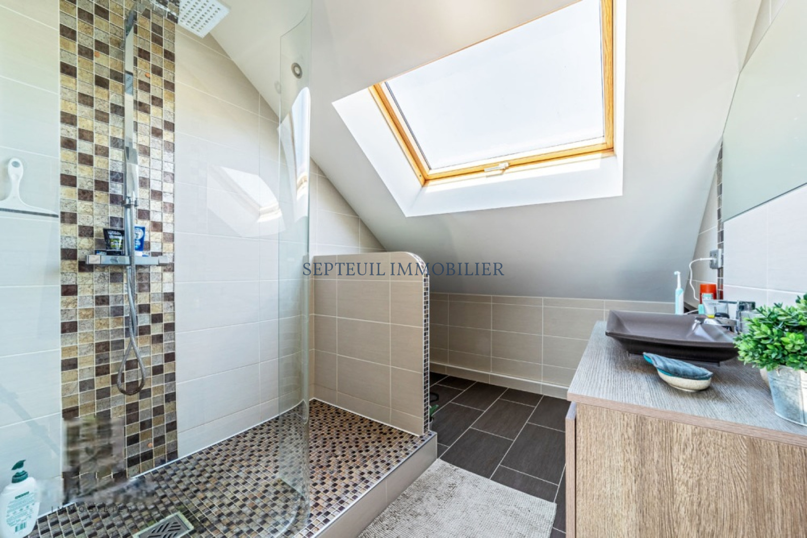THOIRY Près. Dans le village d'Arnouville-Les-Mantes, au calme, en fond d'impasse sans vis-à-vis, longère rénovée d'environ 145 m² habitables (182 utiles) sur 465 m², comprenant :
