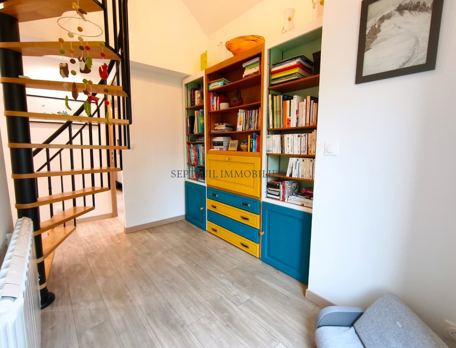 - Au deuxième et dernier étage : bureau traversant, une chambre avec placard.