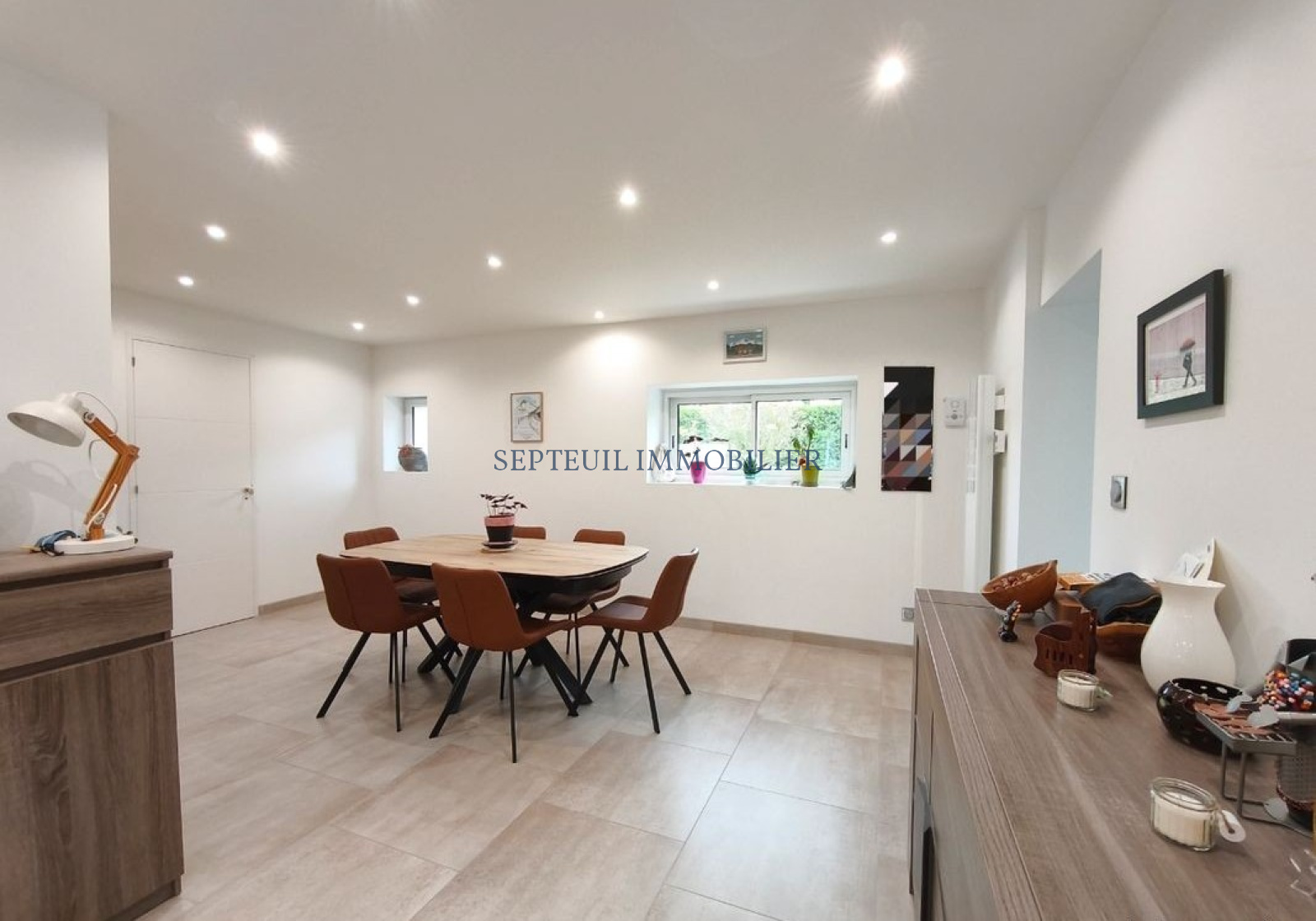- Au rez-de-chaussée : entrée avec vestiaire, séjour avec cuisine aménagée et équipée, salon télé, chambre, salle de douche - buanderie, wc. Terrasse de plain-pied sur le jardin.