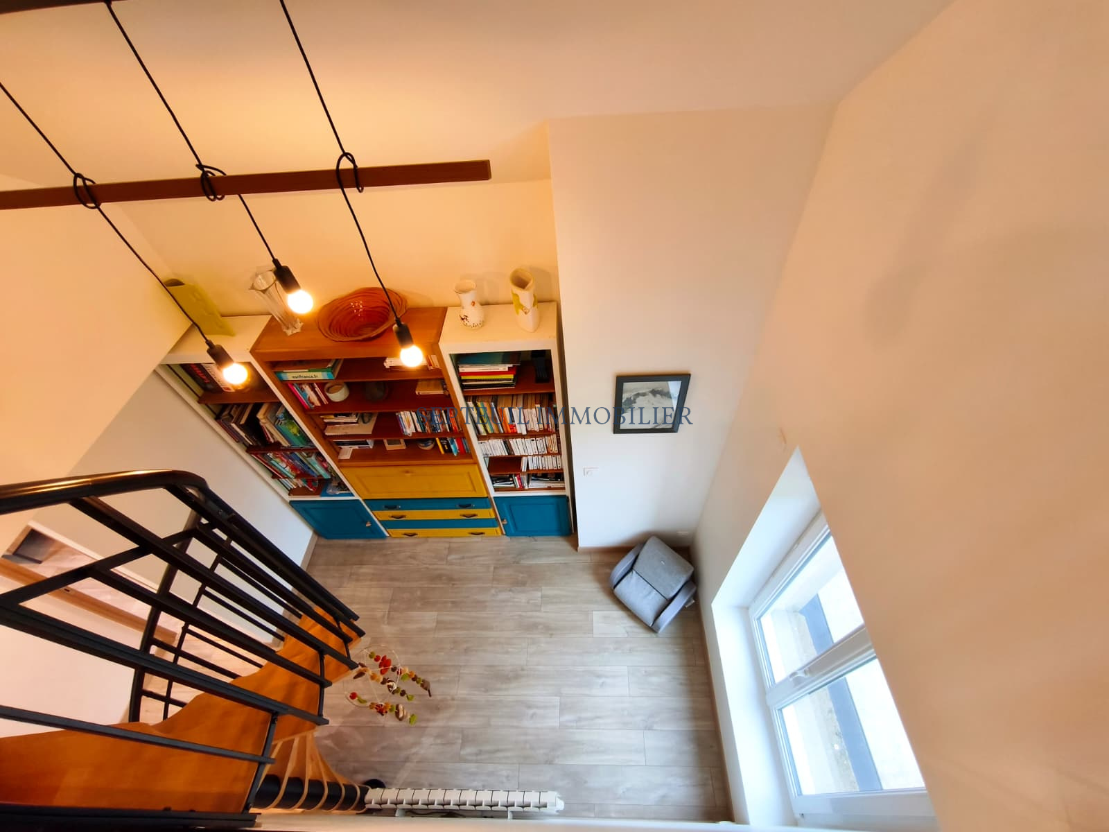 - Au premier étage : palier espace lecture, deux chambres, placard, grande salle de douche - wc.
