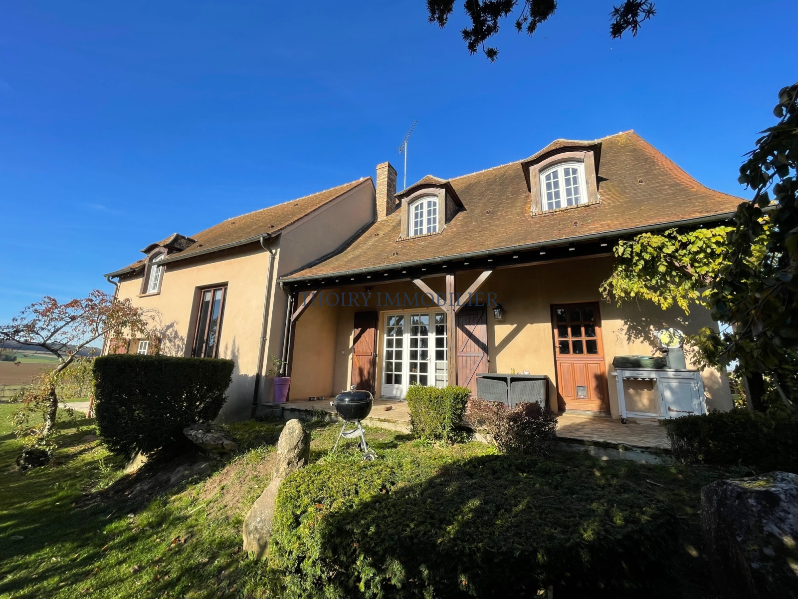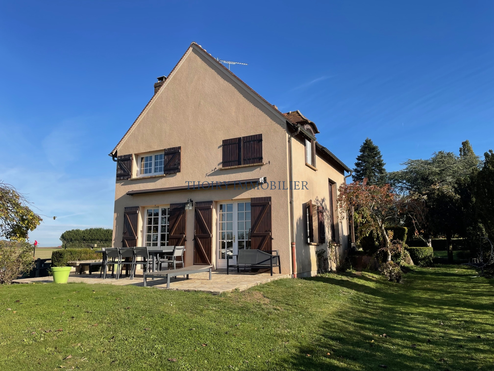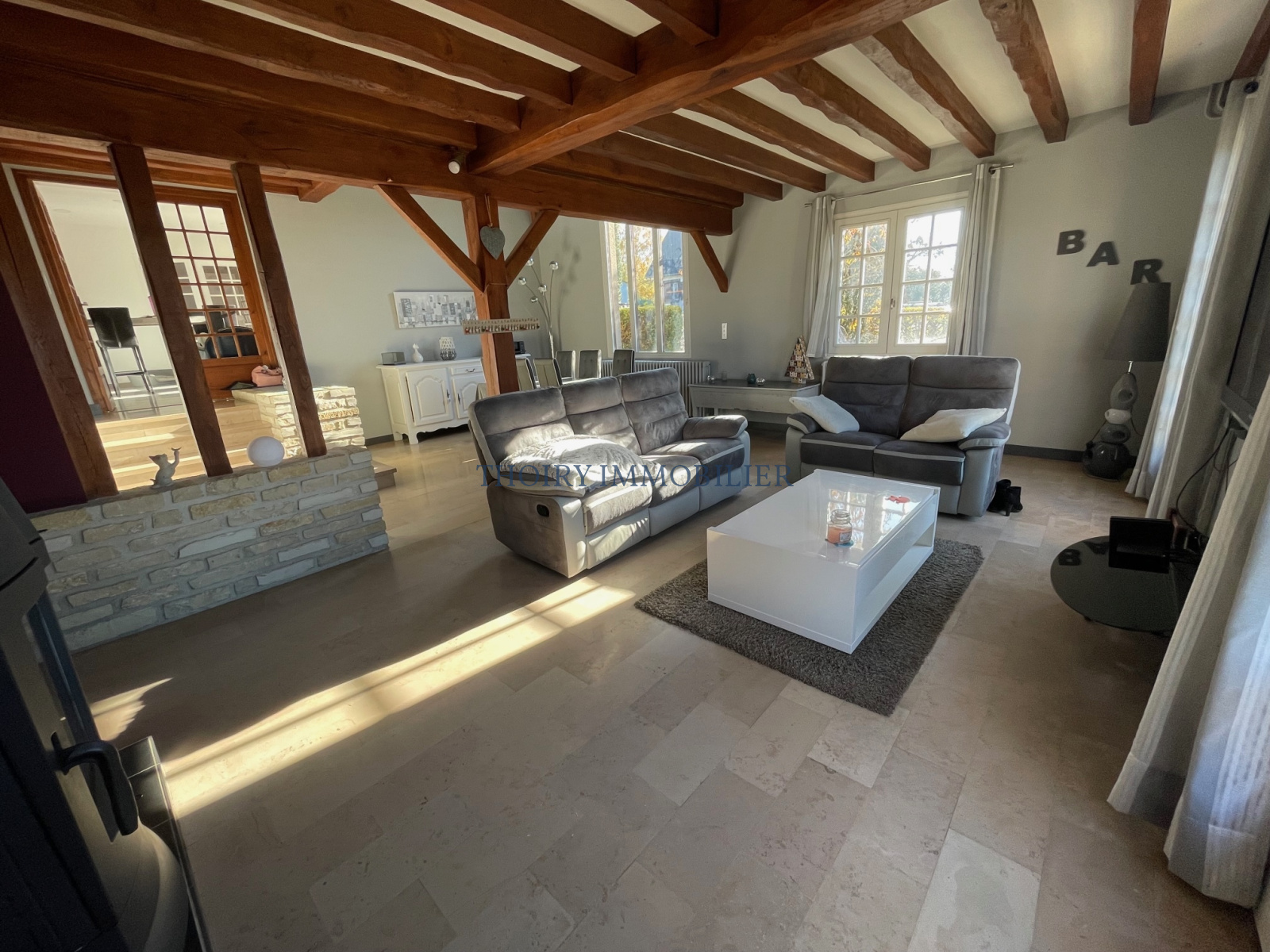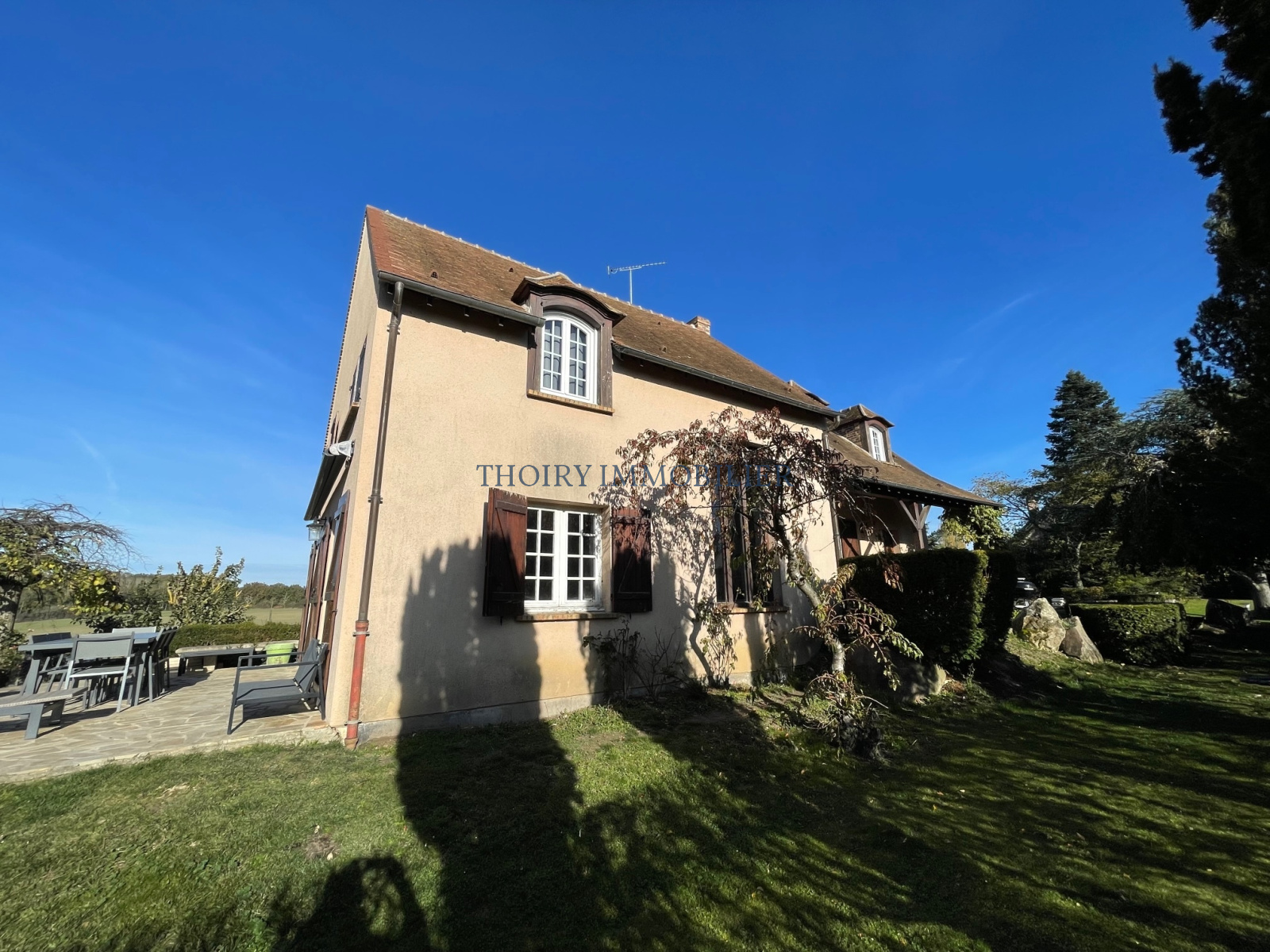 Maison traditionnelle comprenant au rez de chaussée: Entrée avec placards, séjour double + poêle à bois, grande cuisine dinatoire aménagée et équipée, bureau de 19 m², chambre avec salle de douche + wc, wc séparé.