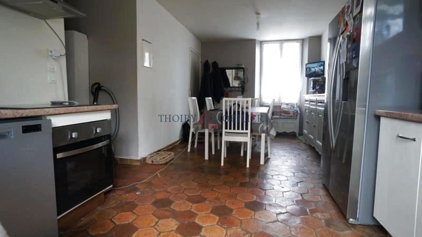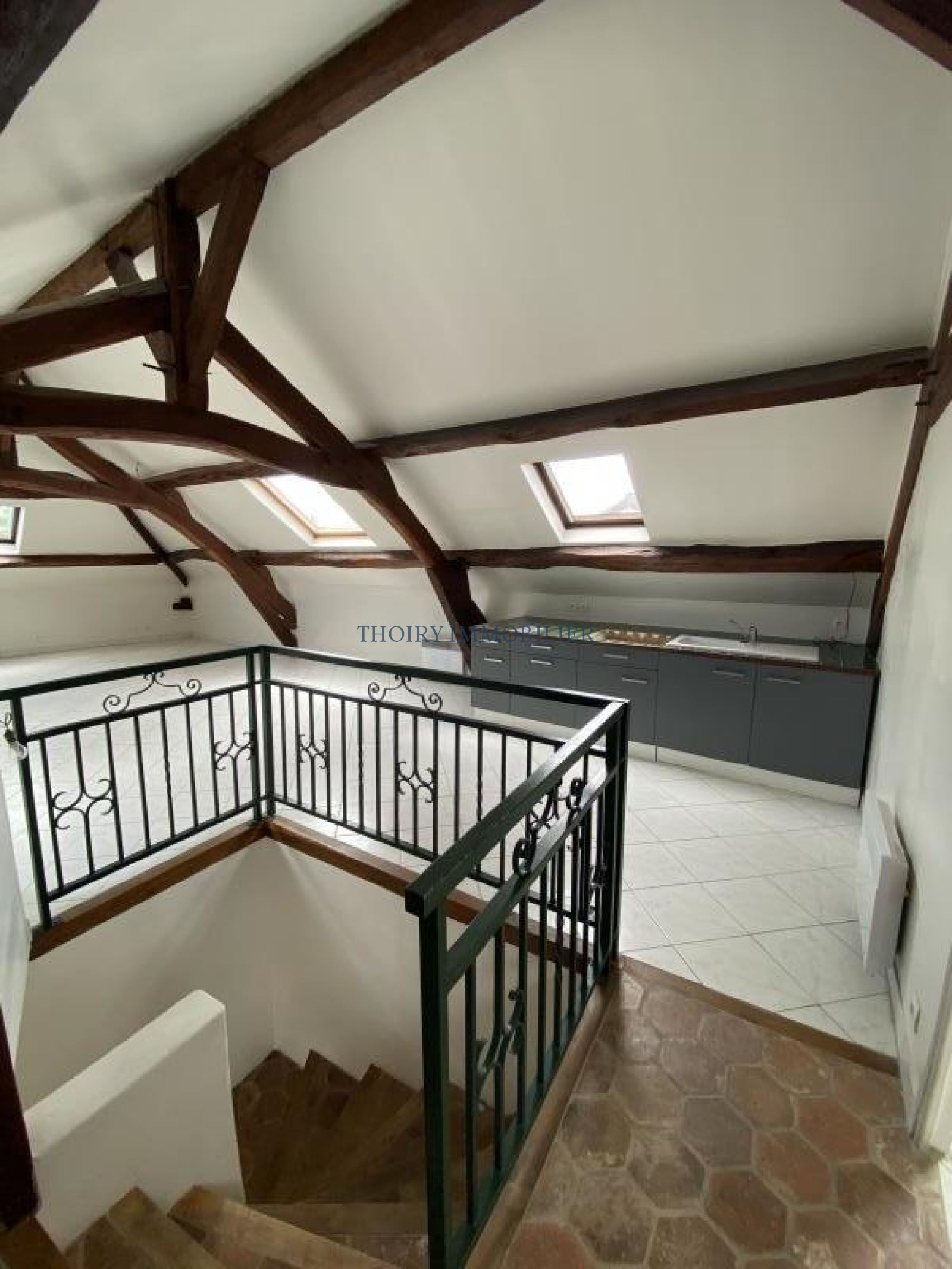 Au 1er étage: Un appartement de type F4 composé d'une entrée, séjour avec cuisine u.s, 3 chambres, salle de bains + wc et wc séparé.