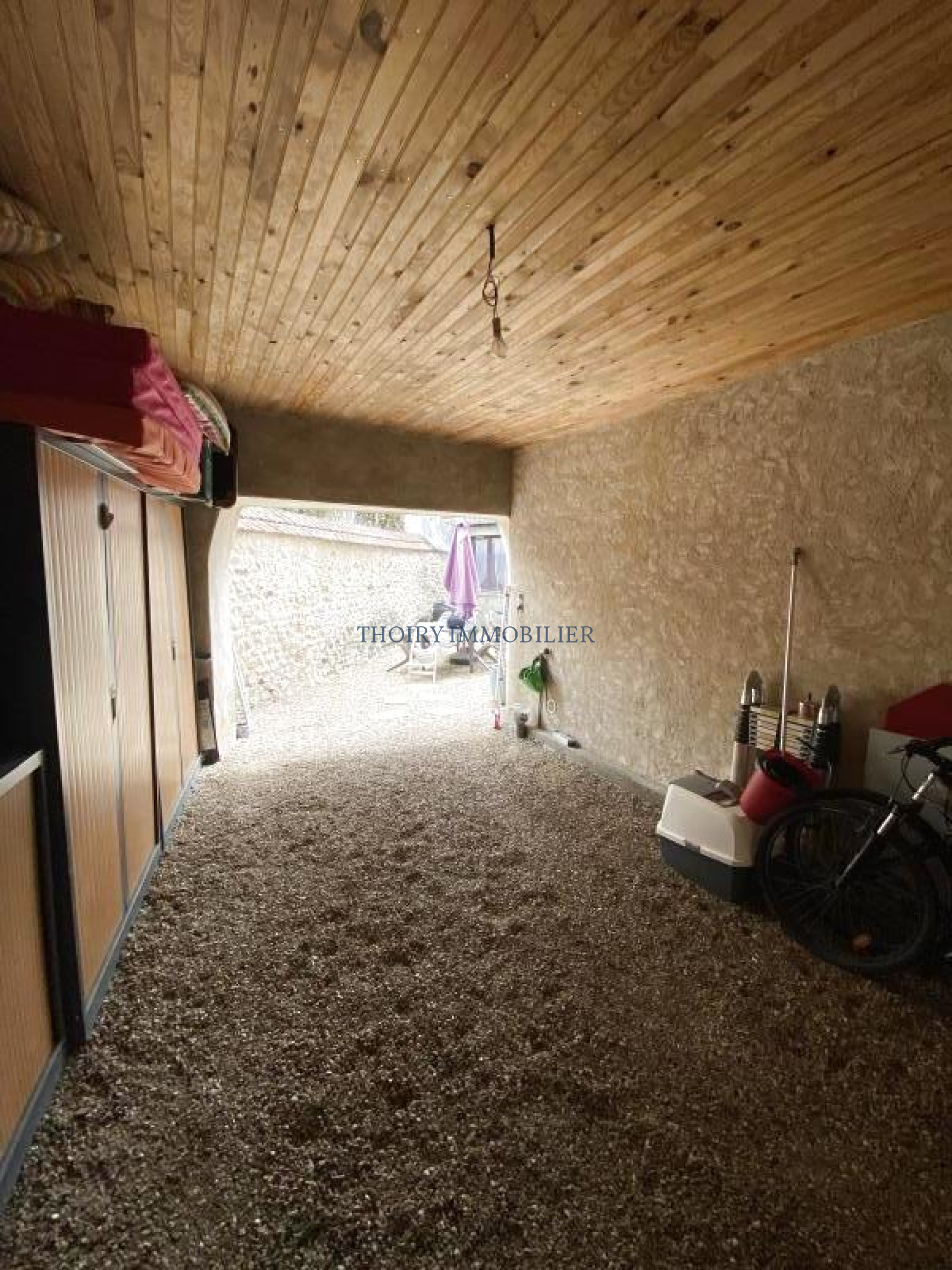Au rez de chaussée: Un appartement de type F3 composé d'un séjour avec cuisine u.s, dégagement, 2 chambres, salle de bains, wc séparé ainsi que d'une cour privative, un garage et une petite dépendance aménagée.