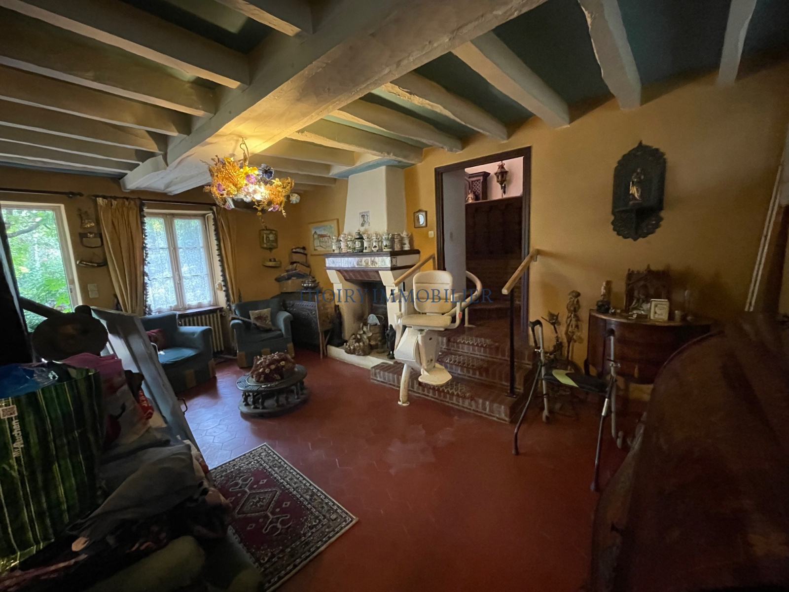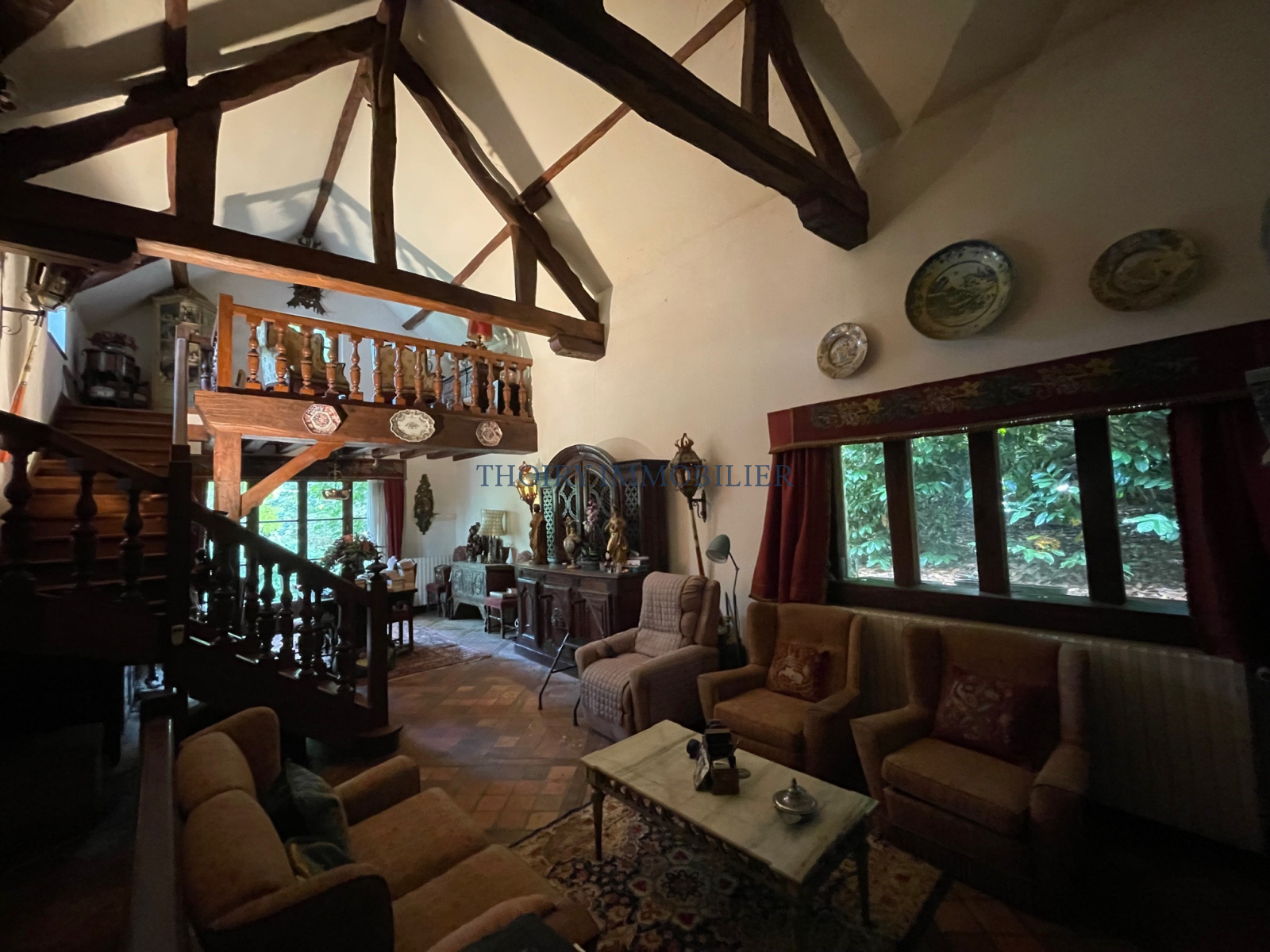 Superbe propriété en pierres apparentes comprenant au rez de chaussée: Grande entrée avec cheminée, cuisine aménagée, séjour cathédrale de 44 m² avec mezzanine et cheminée, salon + cheminée, dégagement, salle de douche, wc séparé, 1 chambre.