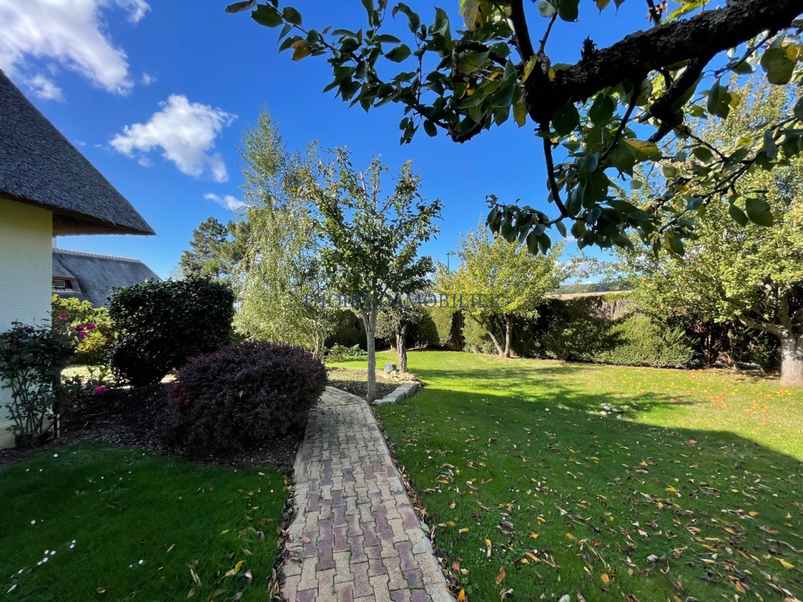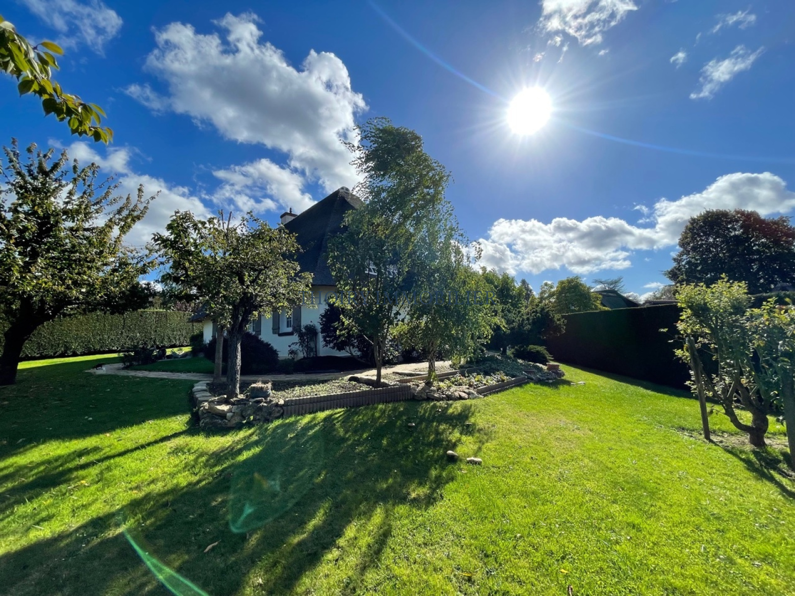Chaumière individuelle sur 980 m² de jardin paysagé, comprenant :
