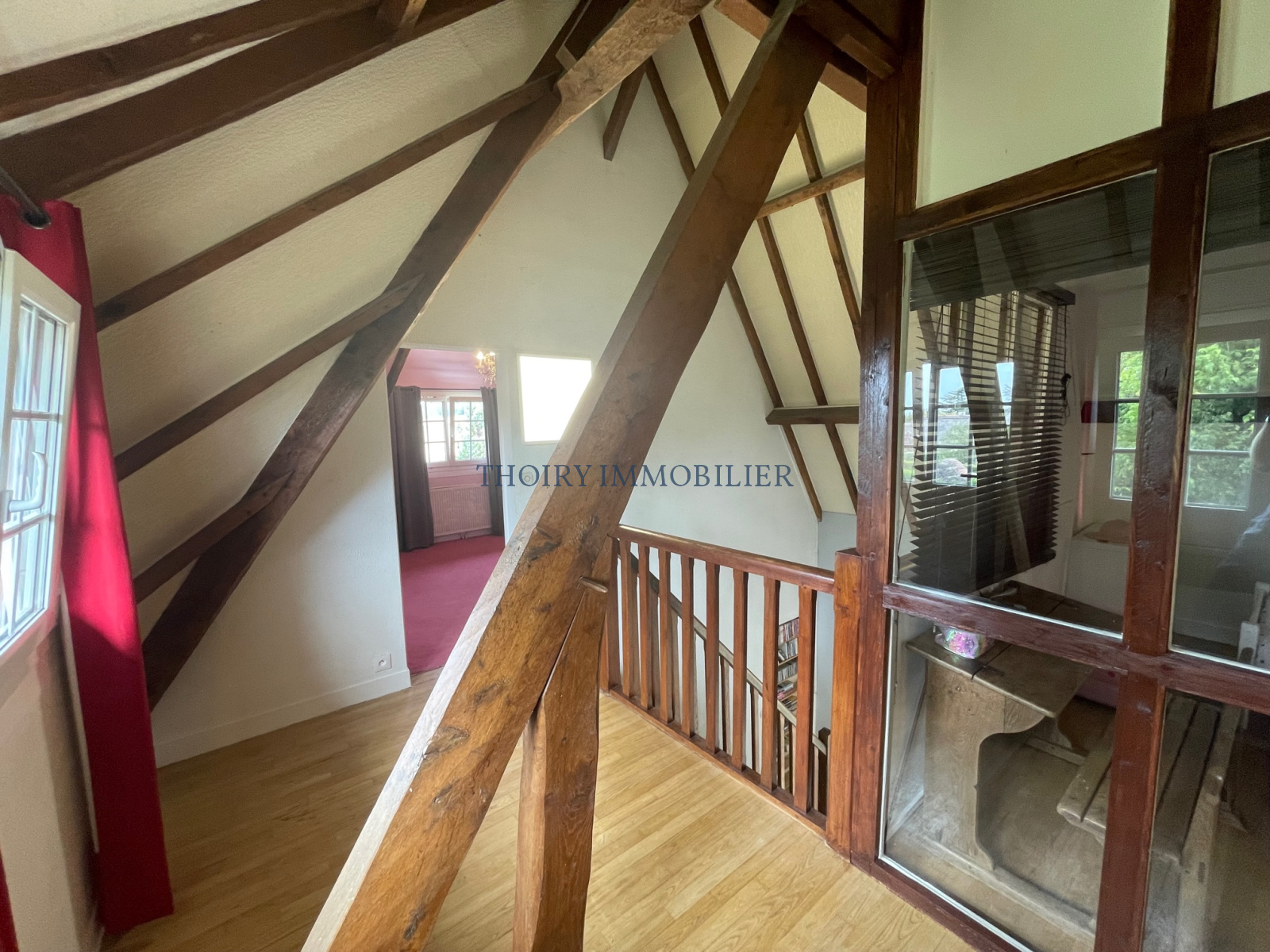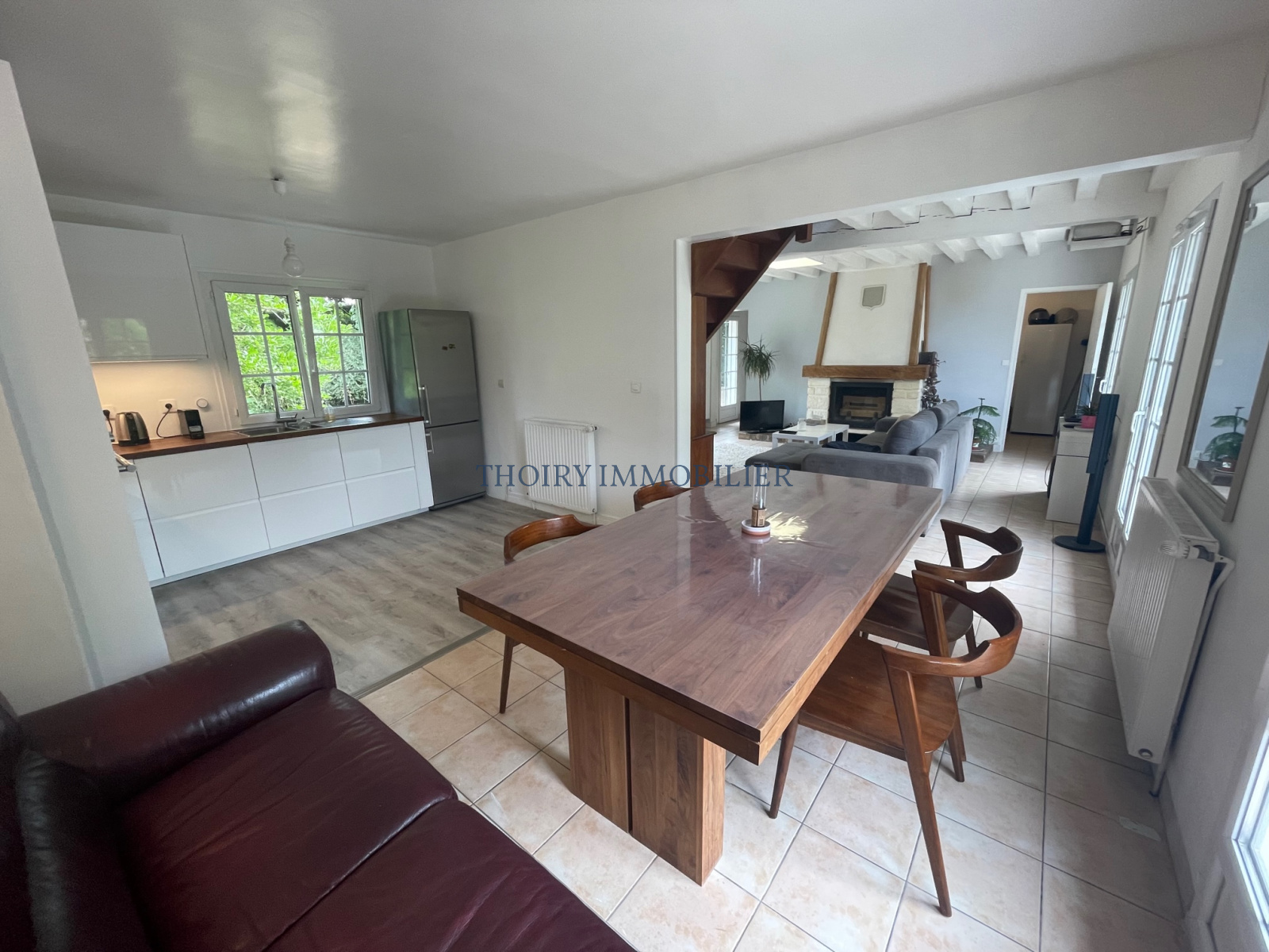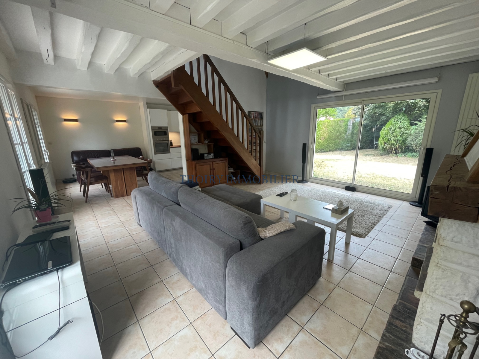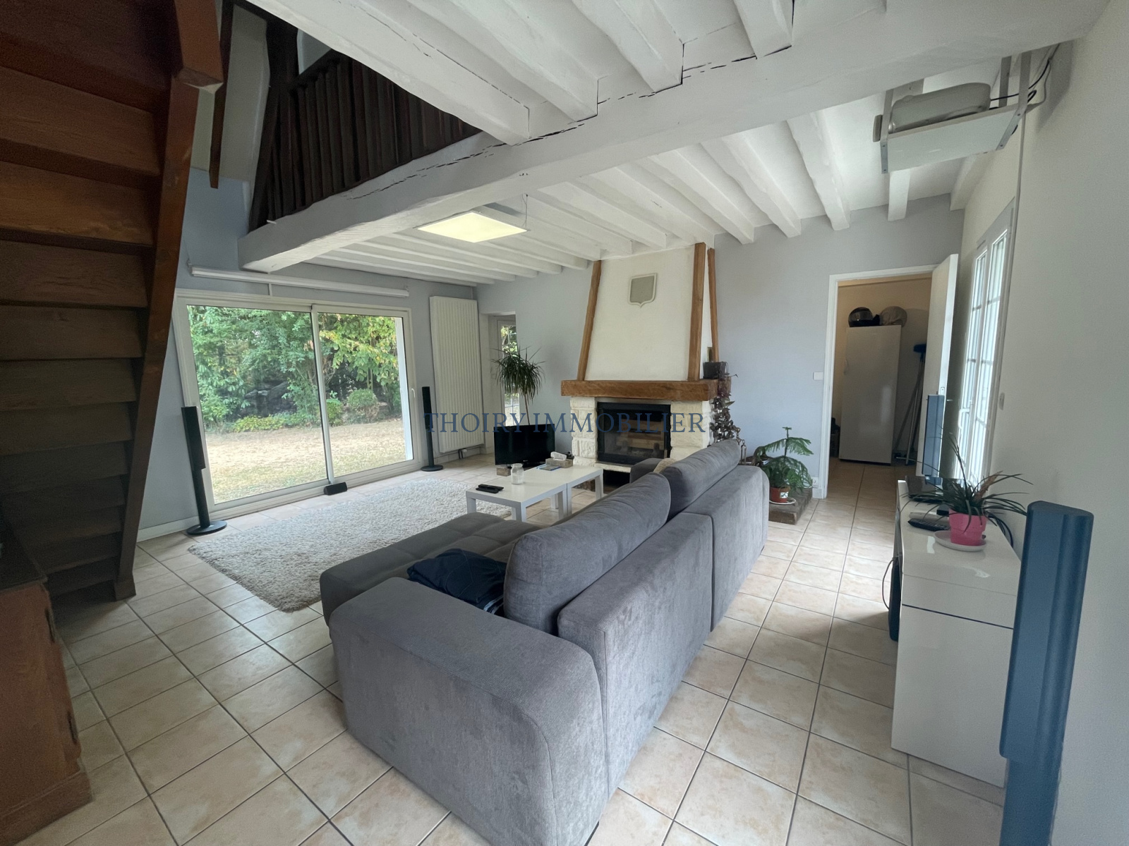 Jolie chaumière individuelle en très bon état général comprenant au rez de chaussée: Entrée avec placard, séjour double avec cheminée insert et cuisine u.s aménagée et équipée, dégagement, une suite parentale avec salle de bains attenante, wc séparé/ buanderie.