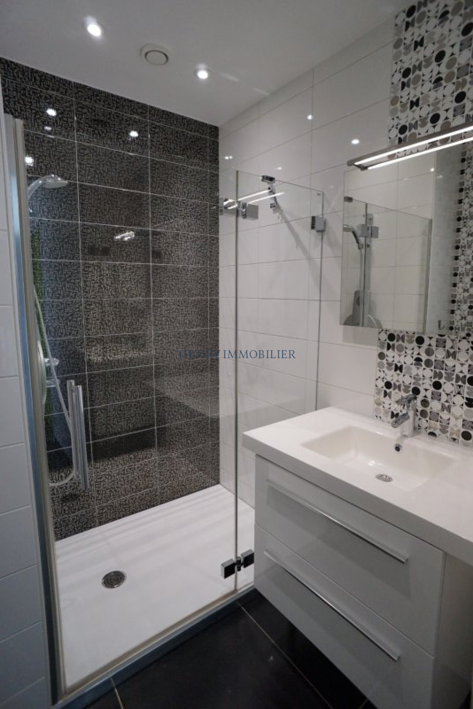 - Au rez-de-chaussée : entrée sur séjour avec cuisine U.S. équipée de 57 m², cellier, wc, dressing une chambre, salle de douche.