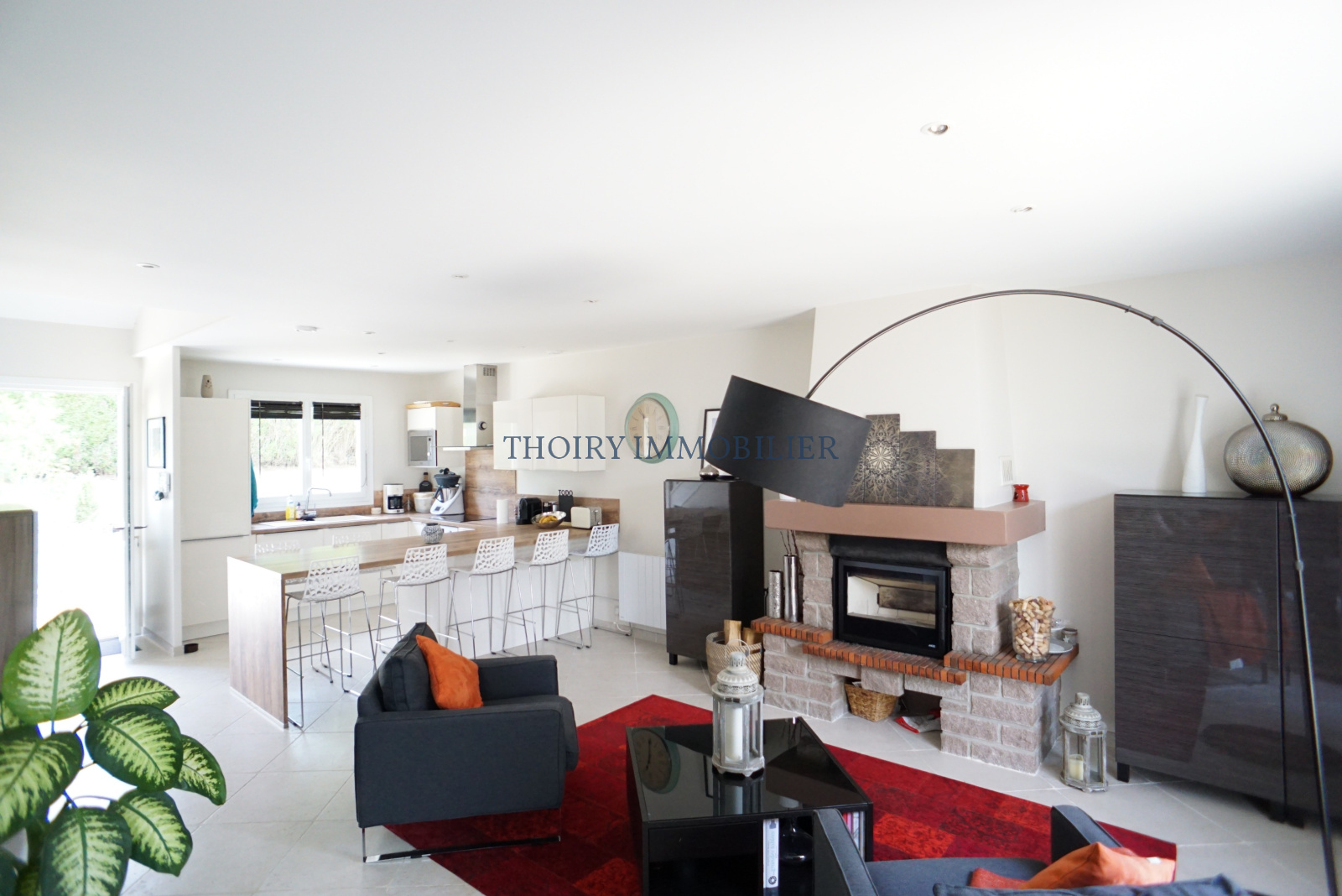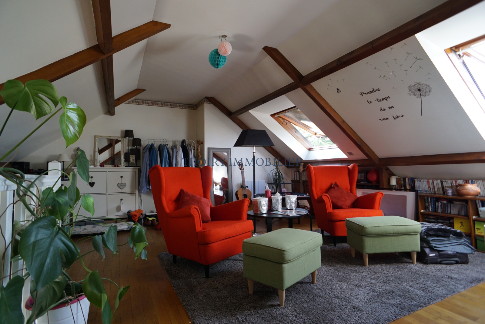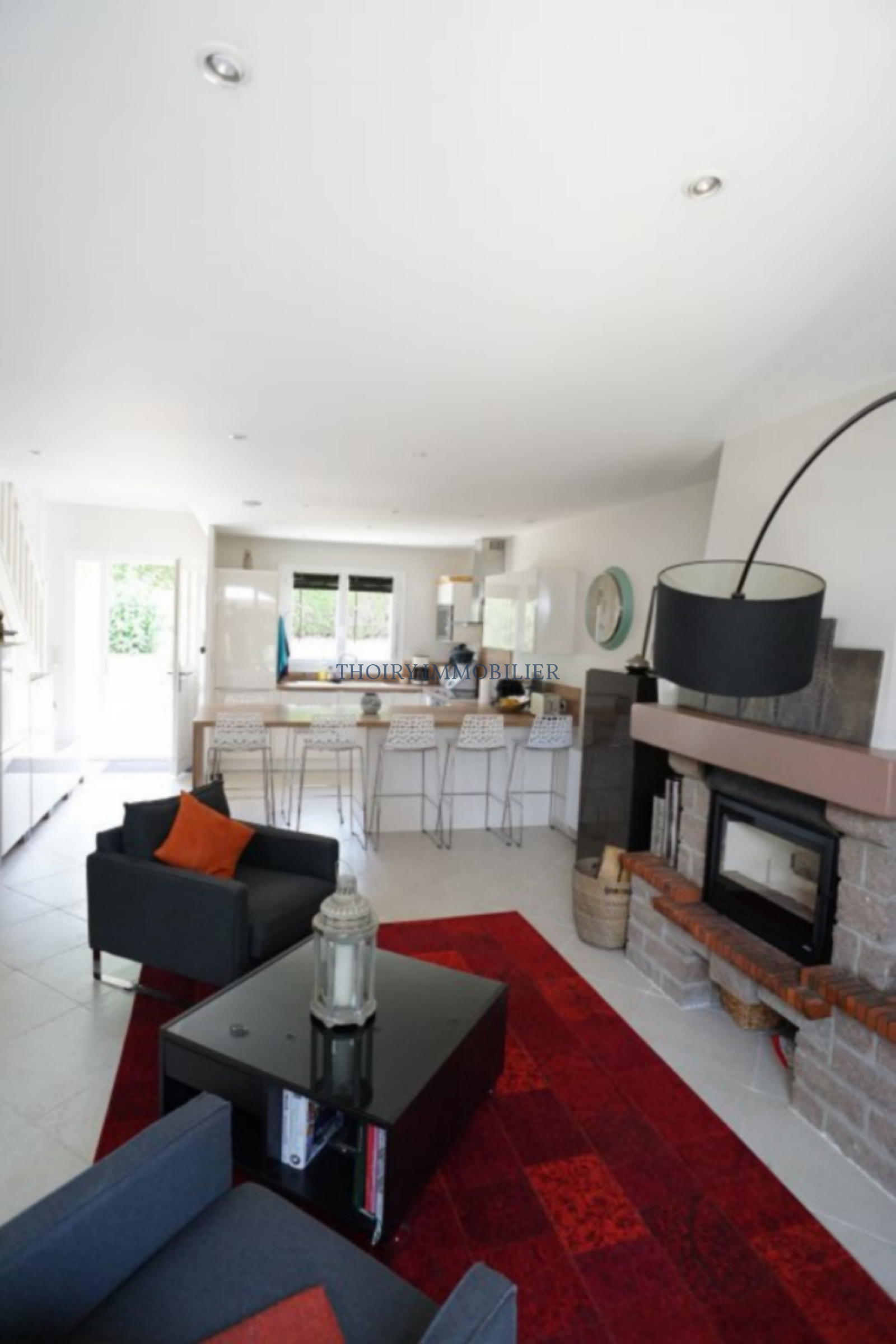 Séjour double avec cheminée insert, cuisine u.s aménagée et équipée, dégagement, 3 chambres, salle de bains et wc séparé.