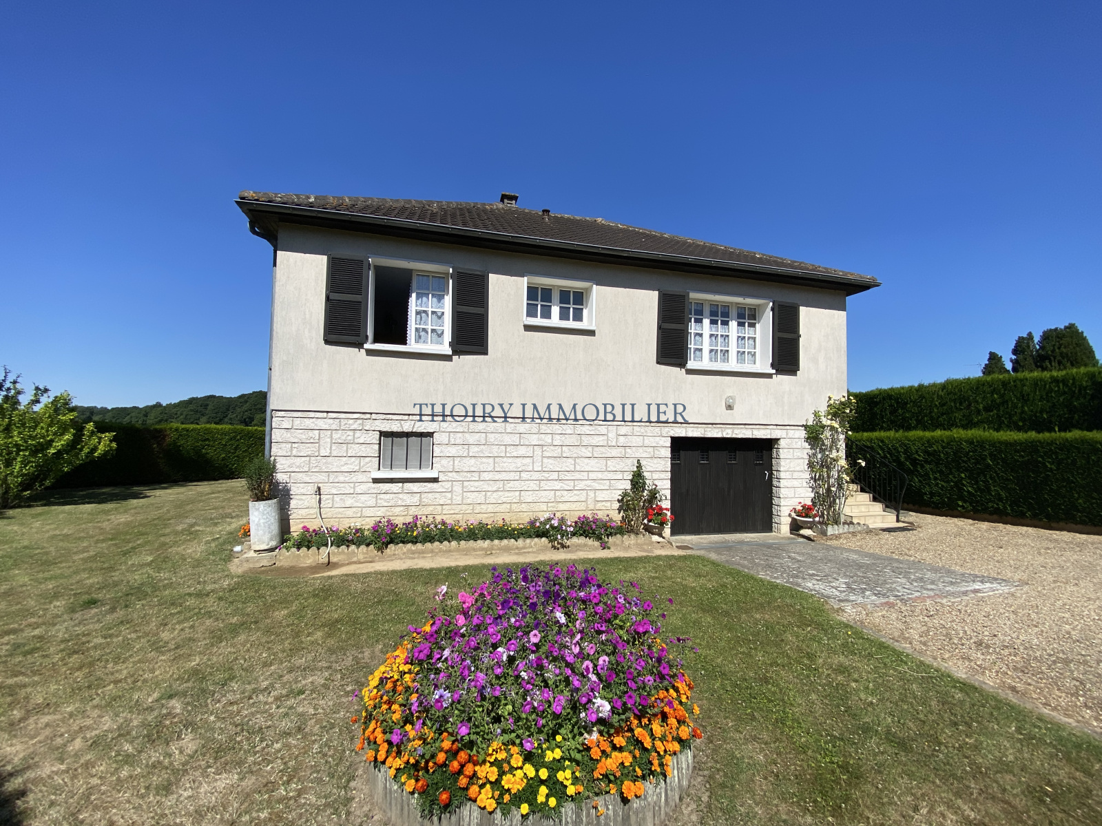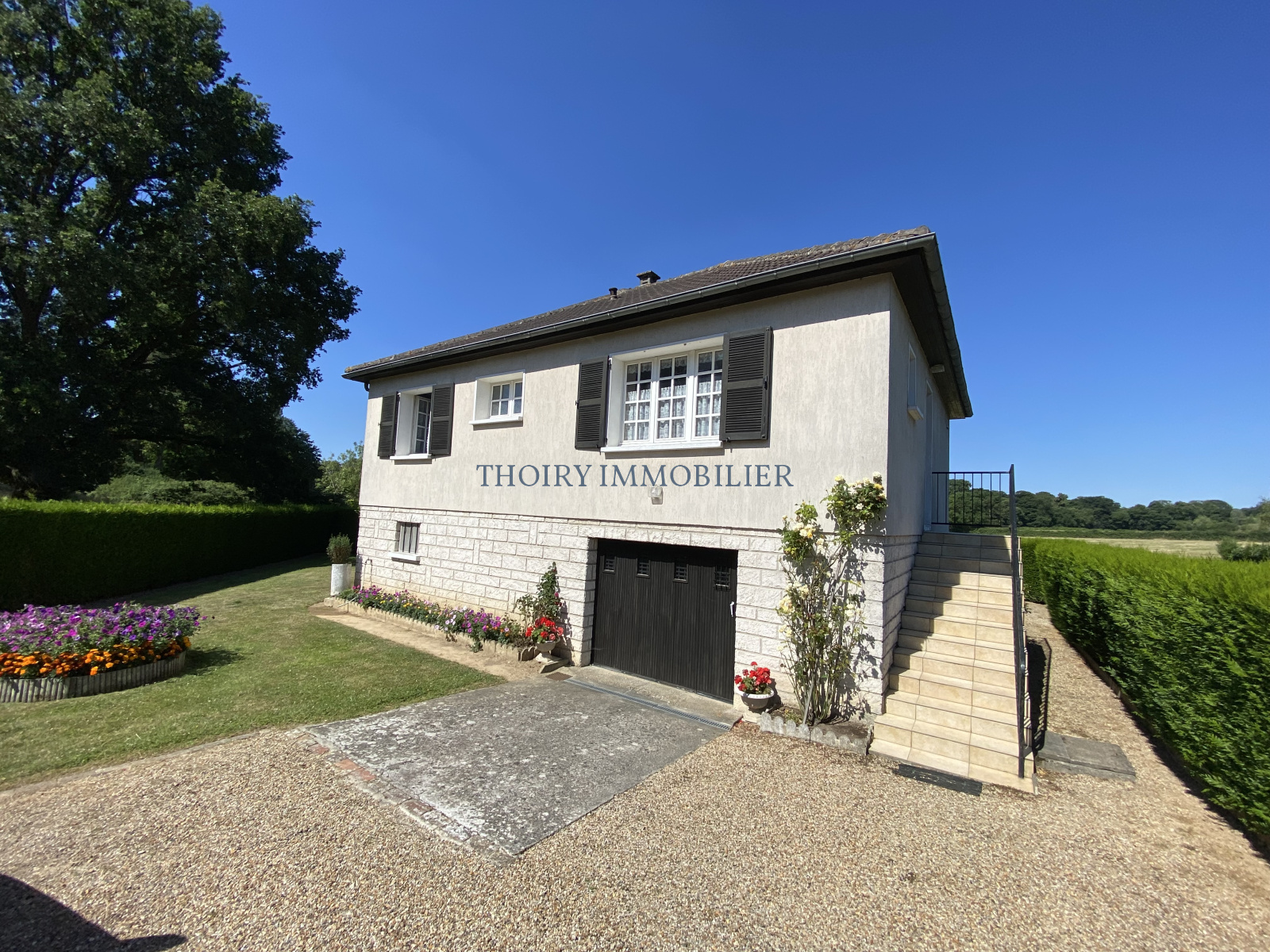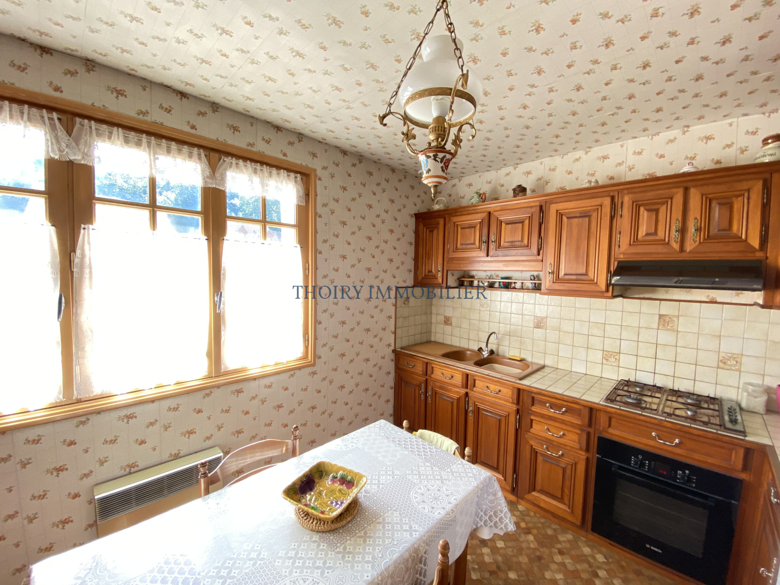 Maison traditionnelle sur sous-sol total surélevé comprenant au rez de chaussée: Entrée, séjour + cheminée à foyer ouvert, cuisine aménagée et équipée, 2 chambres, salle de bains et wc séparé.