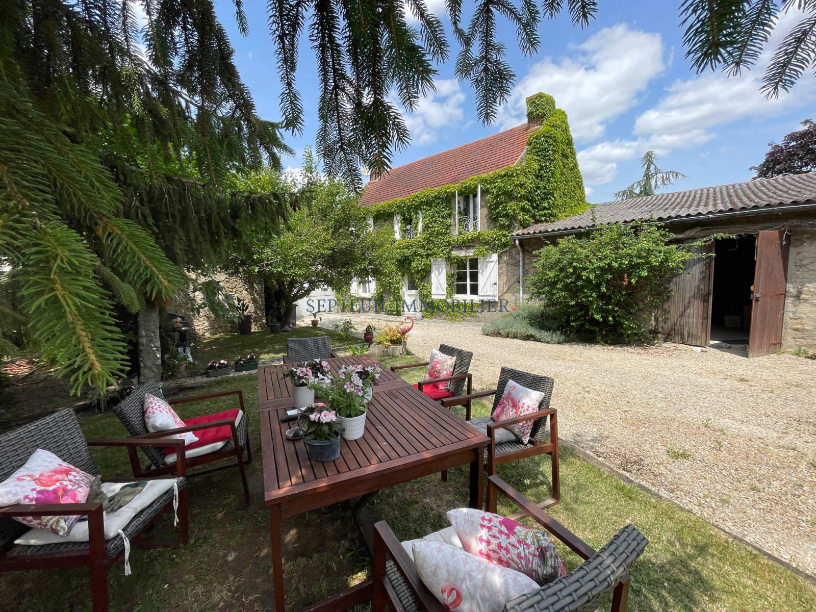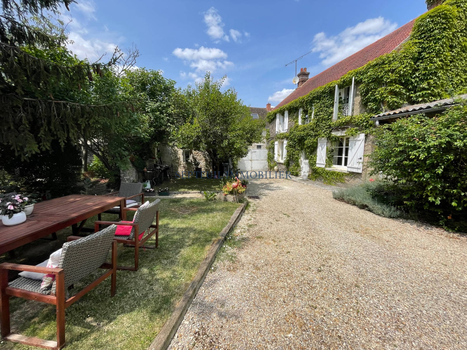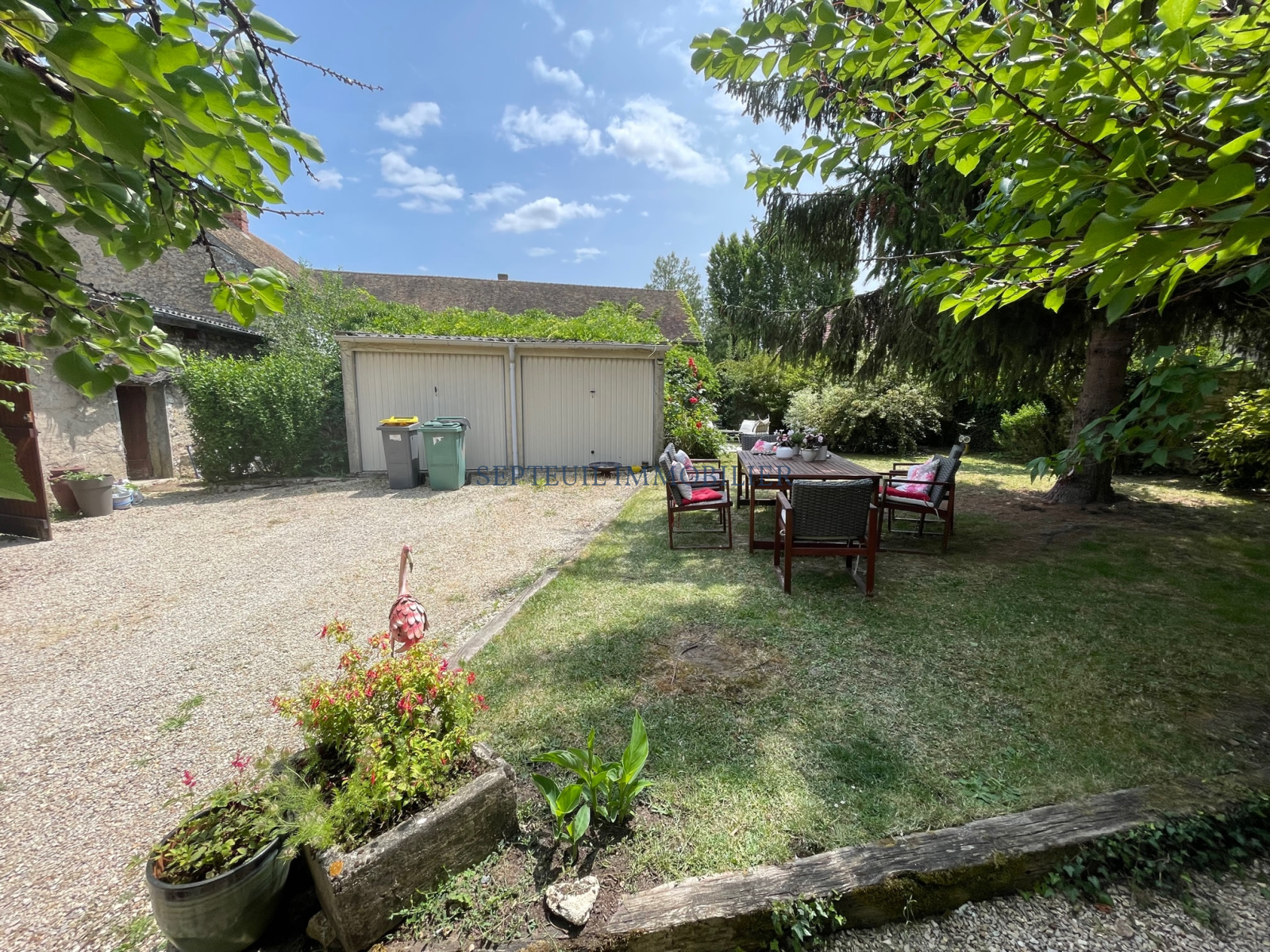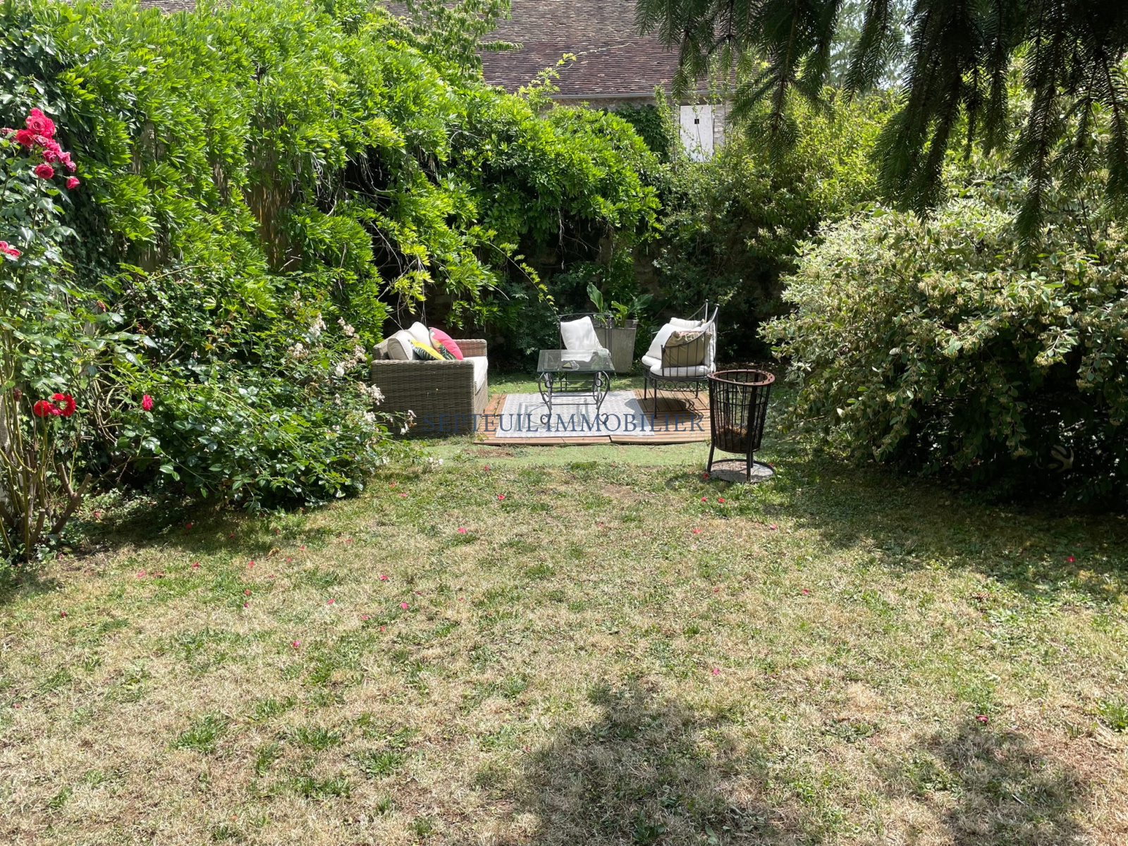 Joli jardin clos de murs de 675 m² avec puits.