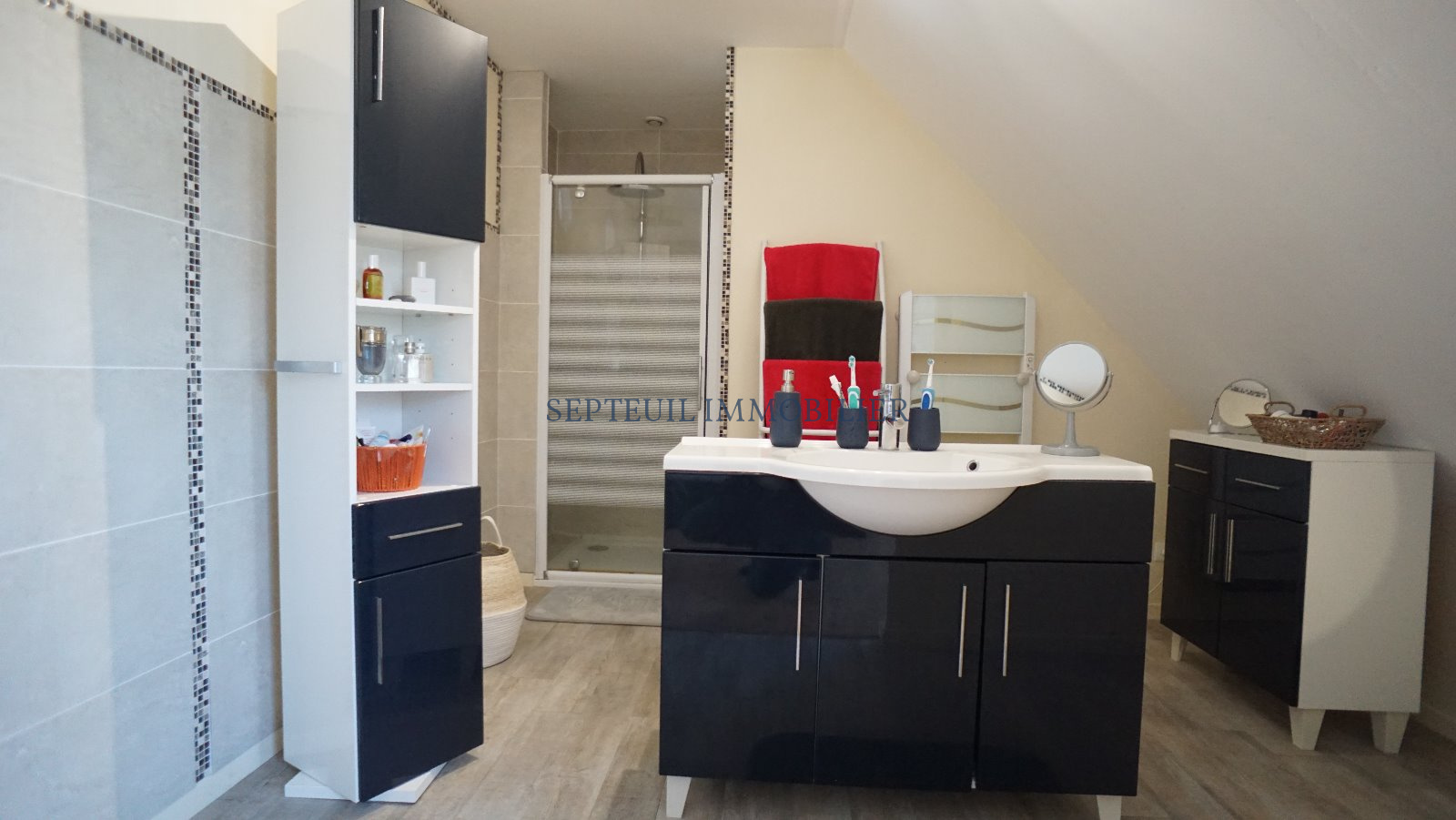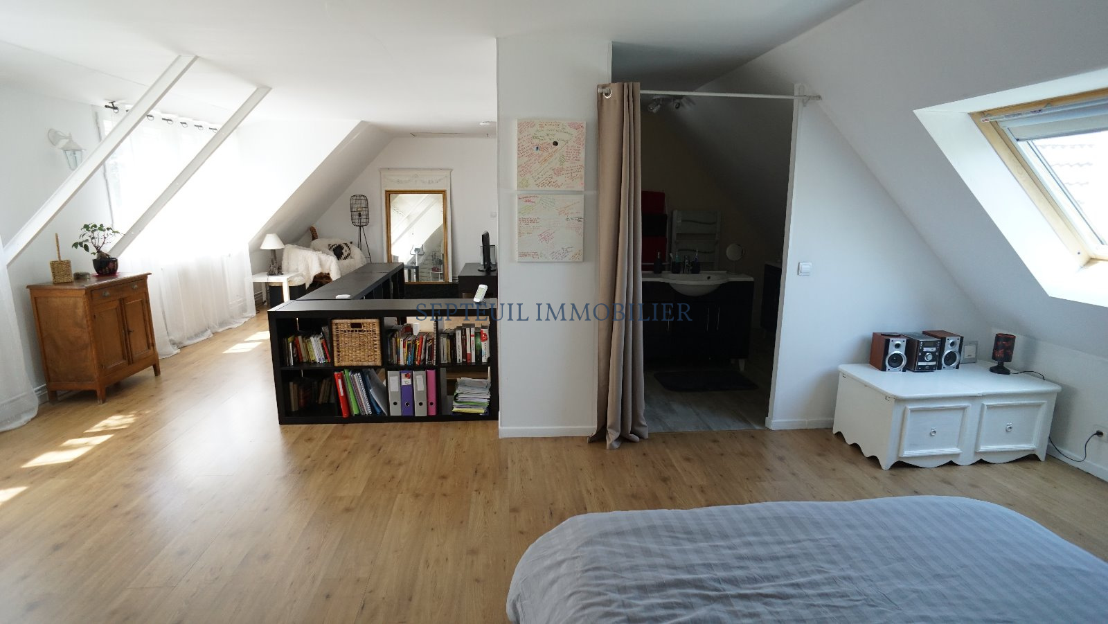 A l'étage : grande suite parentale de 50 m² environ avec salle de douche privative, dressing et wc ( 4ème chambre possible ).