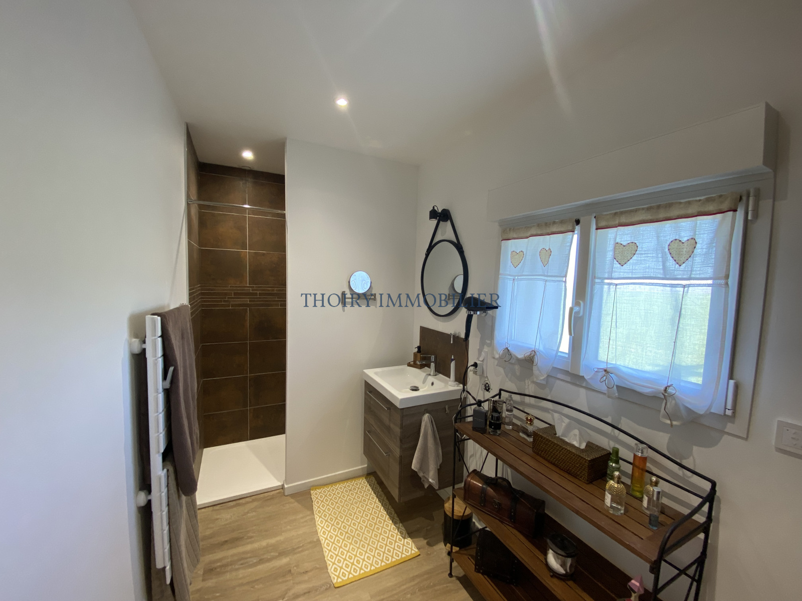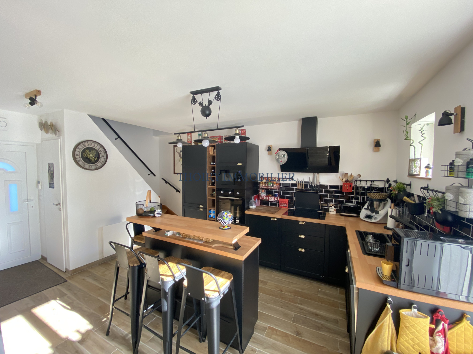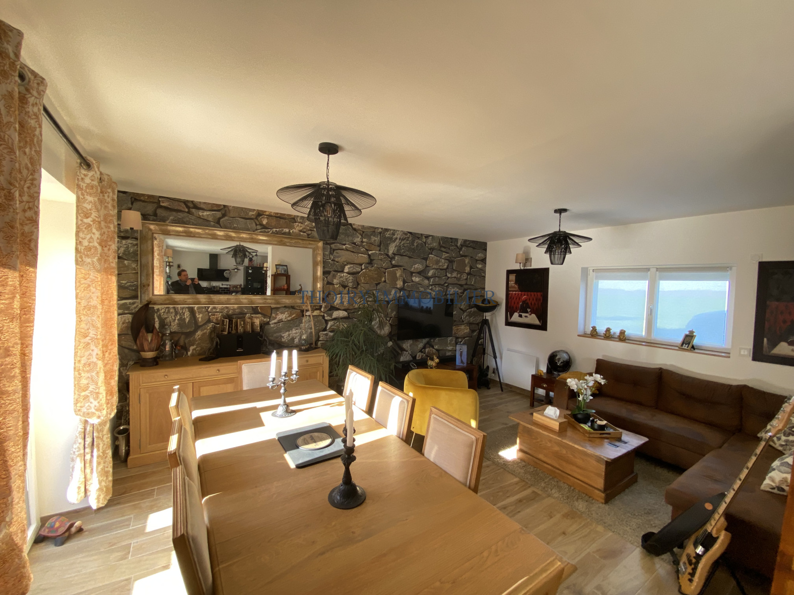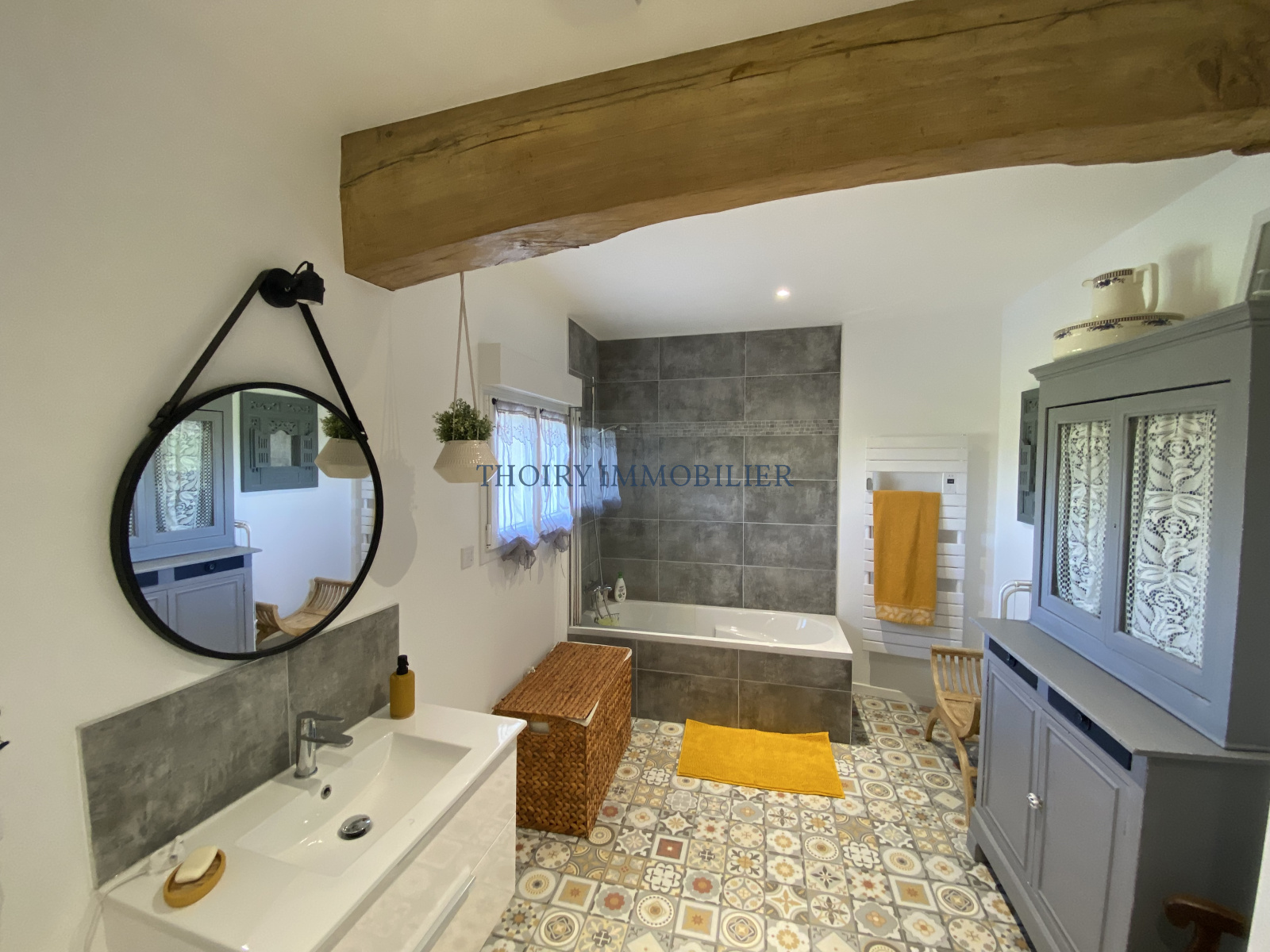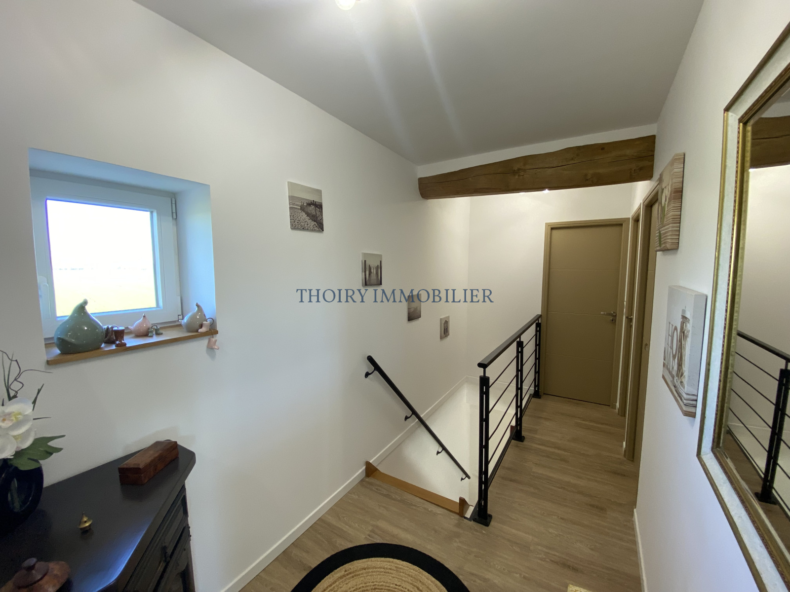 THOIRY Région : Superbe restauration pour cette maison ancienne en pierres comprenant au rez de chaussée: Séjour (conduit de cheminée existant) + cusine u.s aménagée et équipée (40 m²), wc séparé.