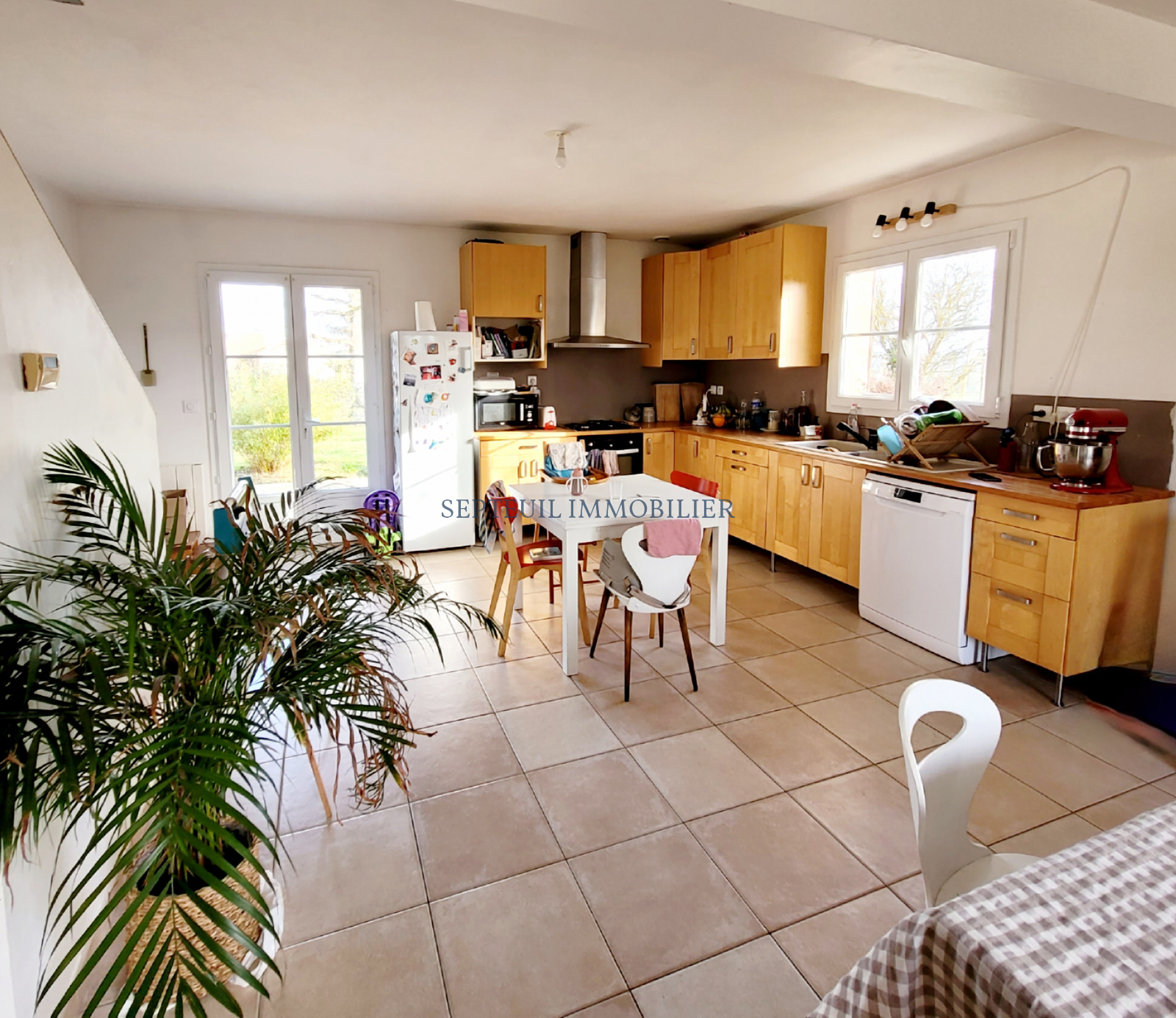 Dans un charmant village, au calme, cette belle maison récente de 2007, bien implantée sur son terrain de 1000 m², plat et arboré, vous propose :