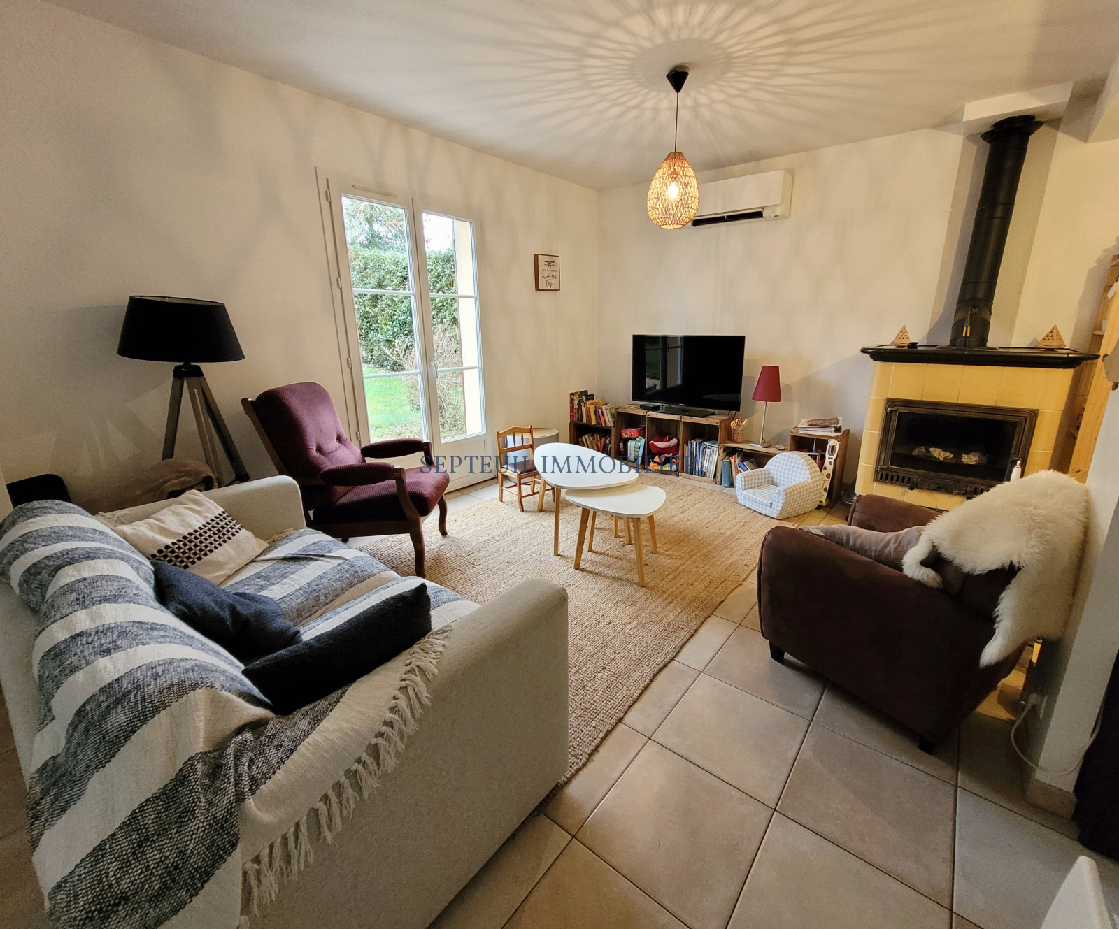 Au rez-de-chaussée un séjour avec cuisine US équipée de 55 m², arrière cuisine-buanderie, une chambre, wc.