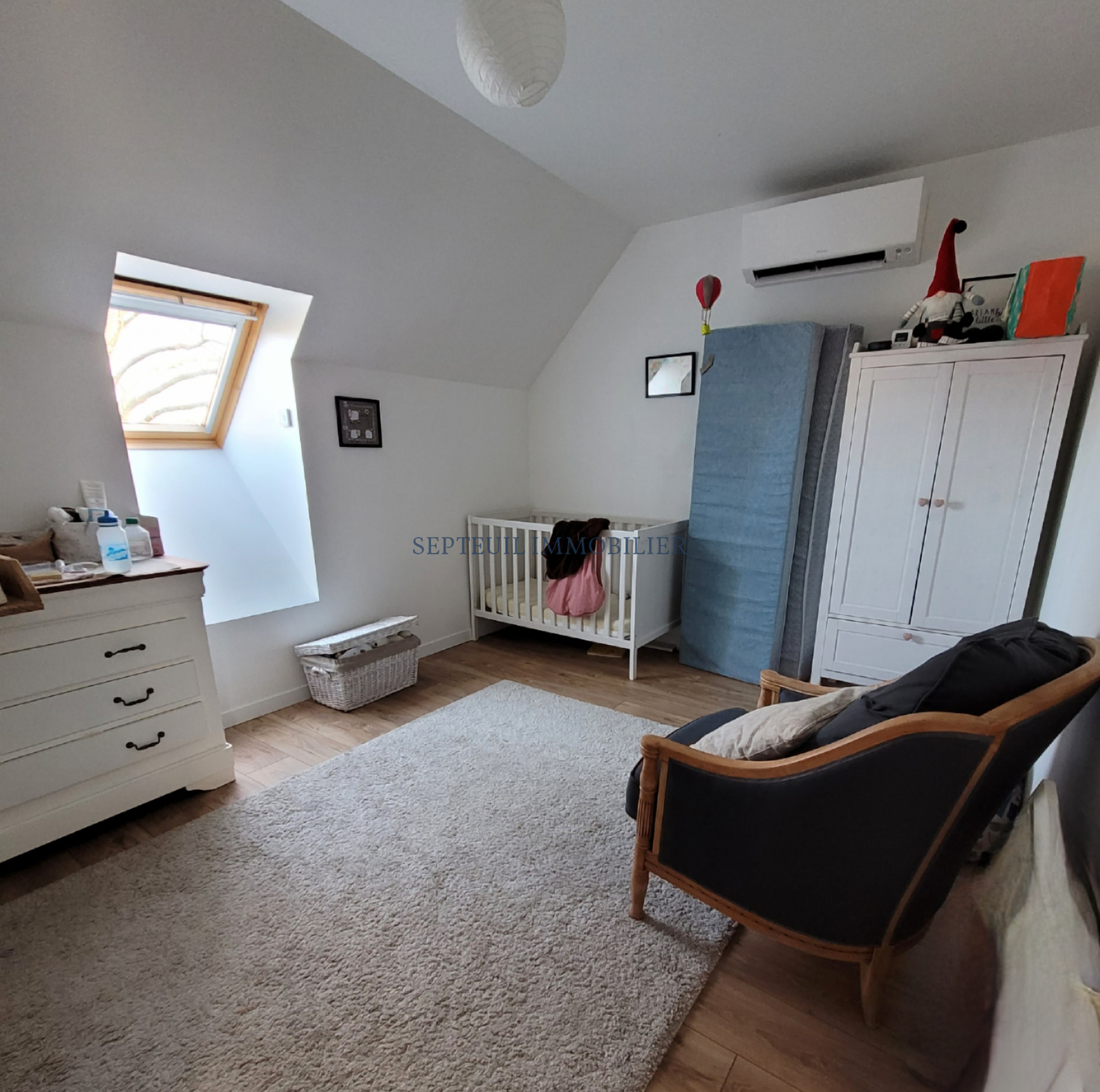 A l'étage, un palier-bureau distribue 3 chambres, une salle de bains, une salle de douche et un WC séparé.