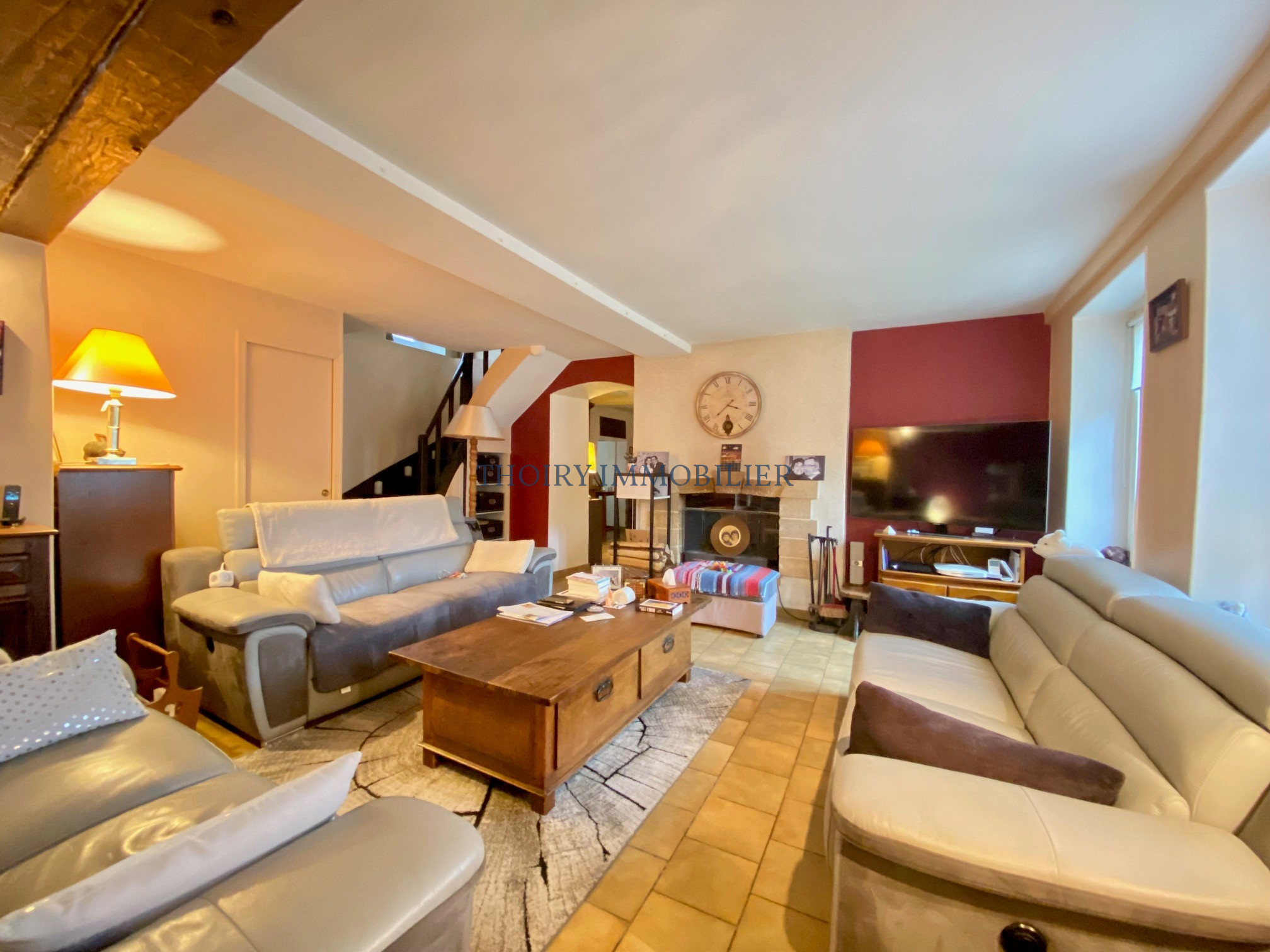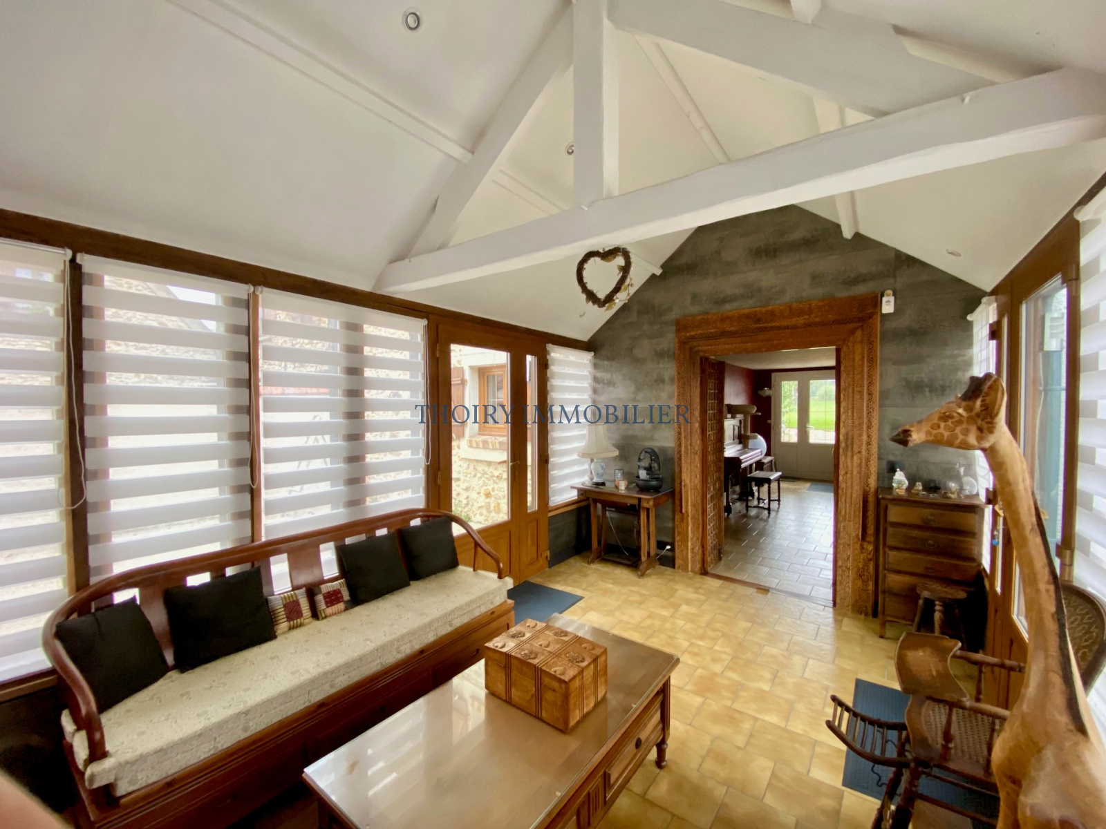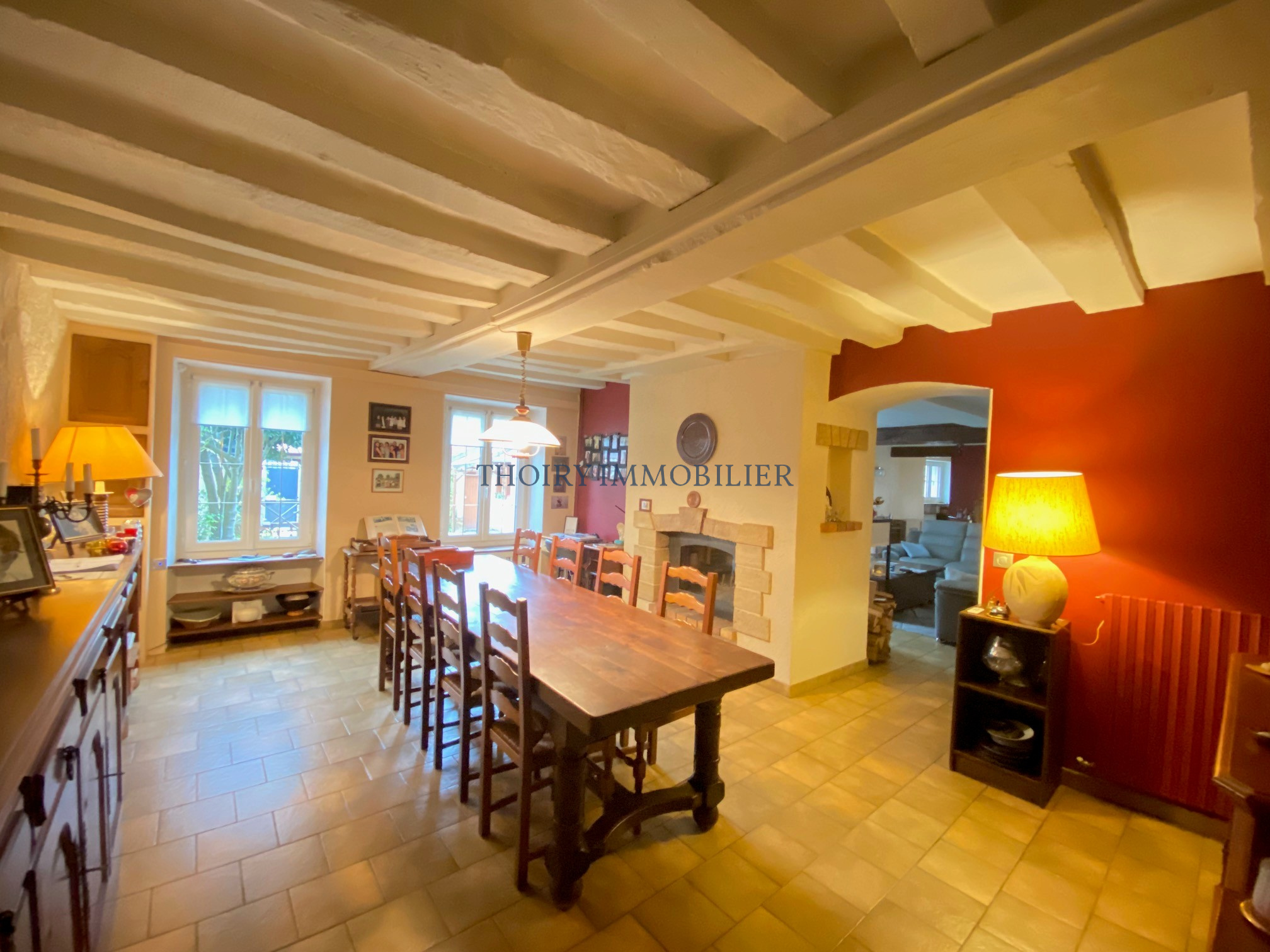 Au rez-de-chaussée : Entrée sous véranda, salon avec cheminée double foyer donnant sur la salle à manger , cuisine aménagée équipée avec accès vers le jardin, chaufferie/buanderie/cellier.