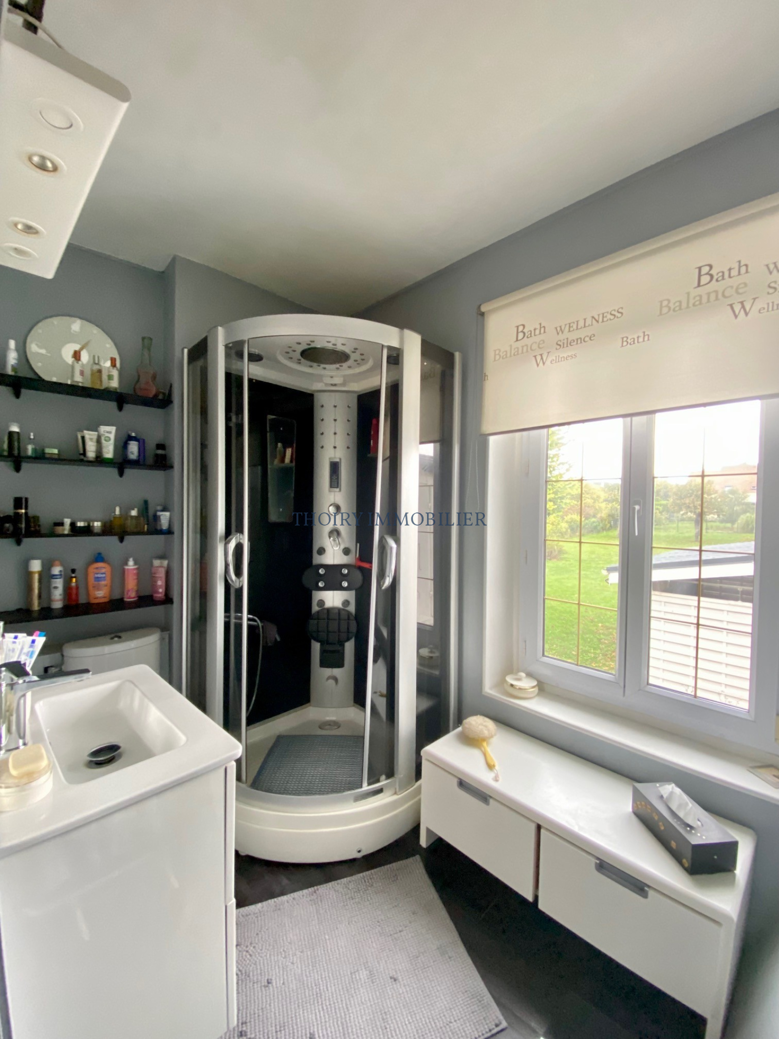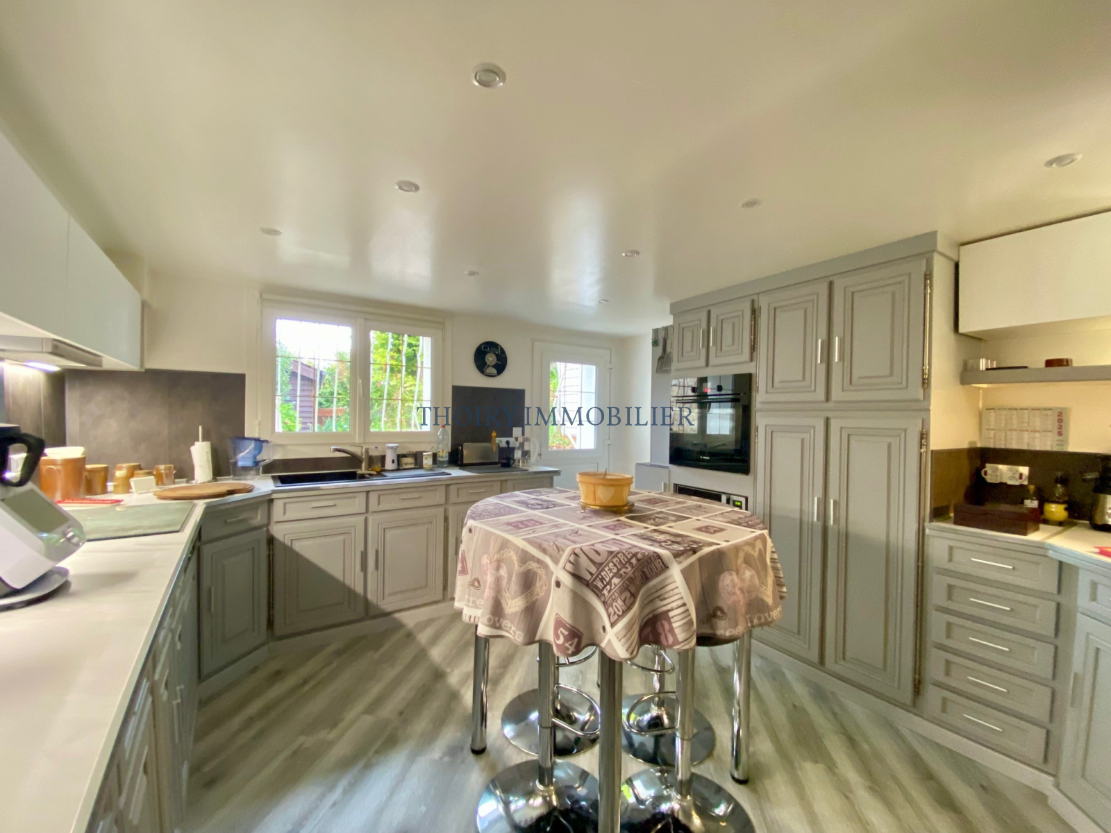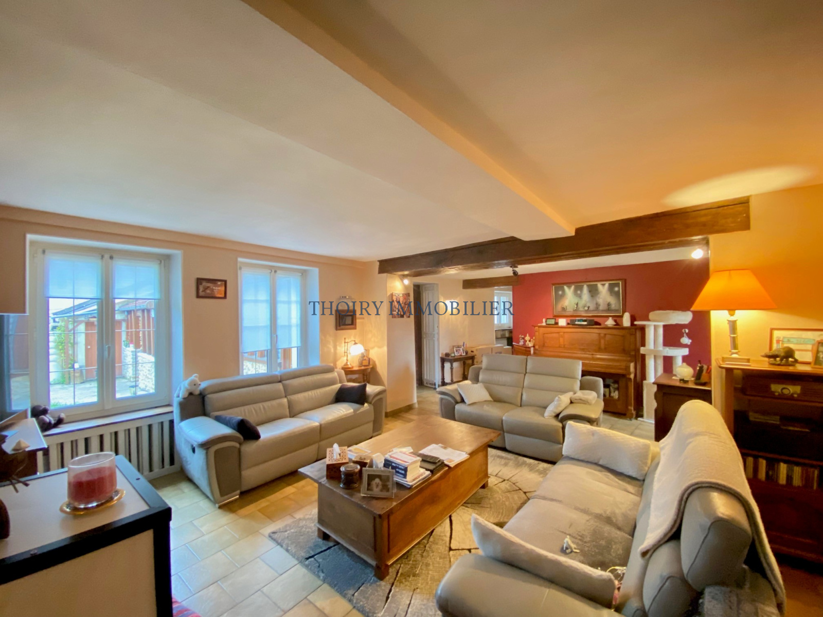 Au rez-de-chaussée : Entrée sous véranda, salon avec cheminée double foyer donnant sur la salle à manger , cuisine aménagée équipée avec accès vers le jardin, chaufferie/buanderie/cellier.