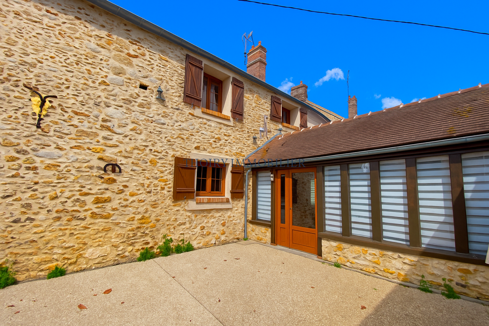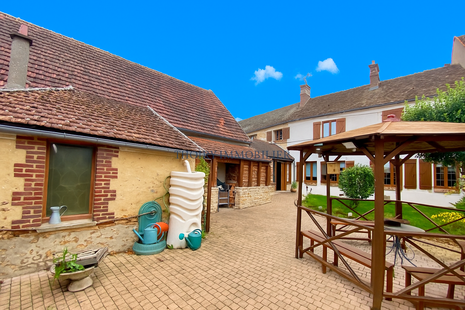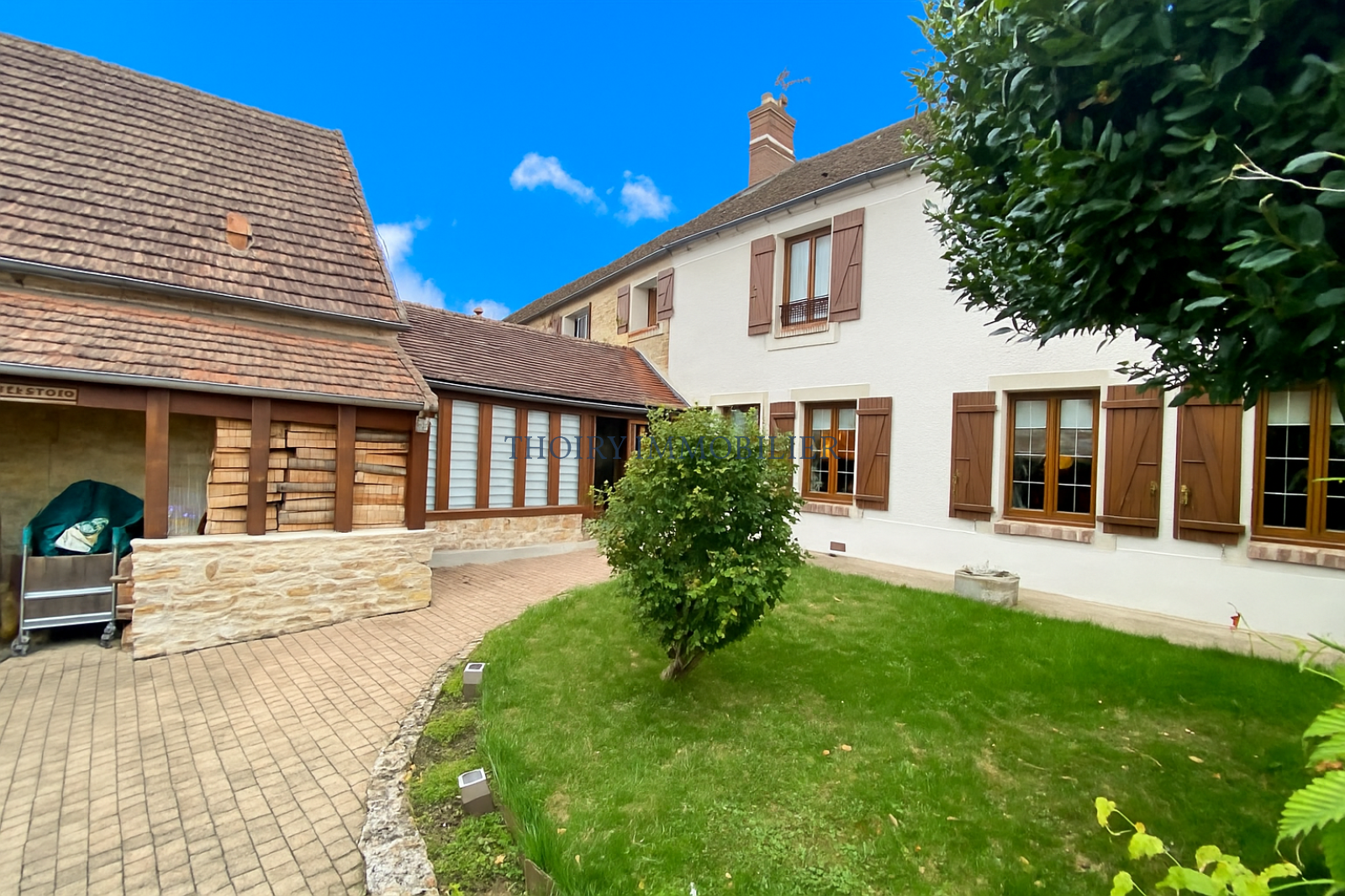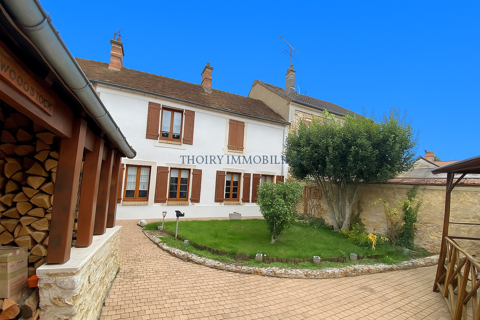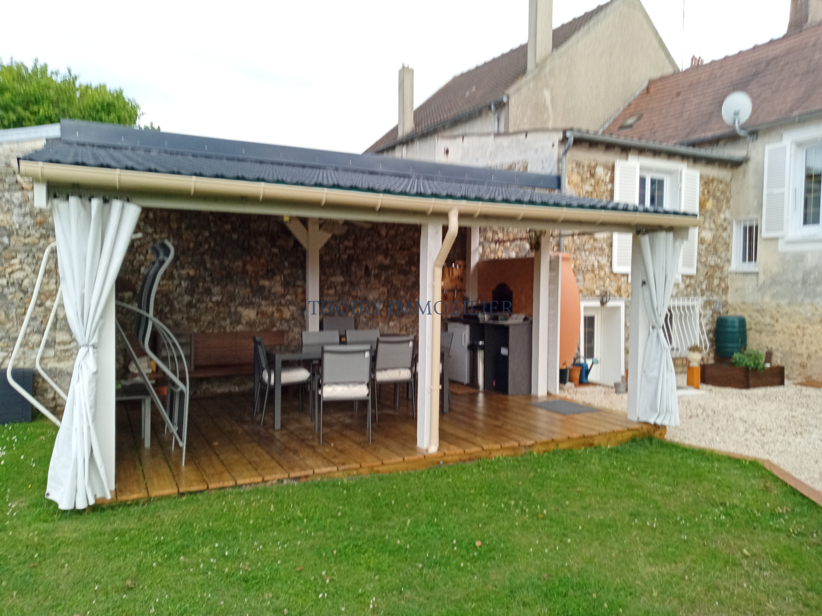 Terrasse couverte. Abri de jardin. Bûcher. Grange en pierres de 54 m².