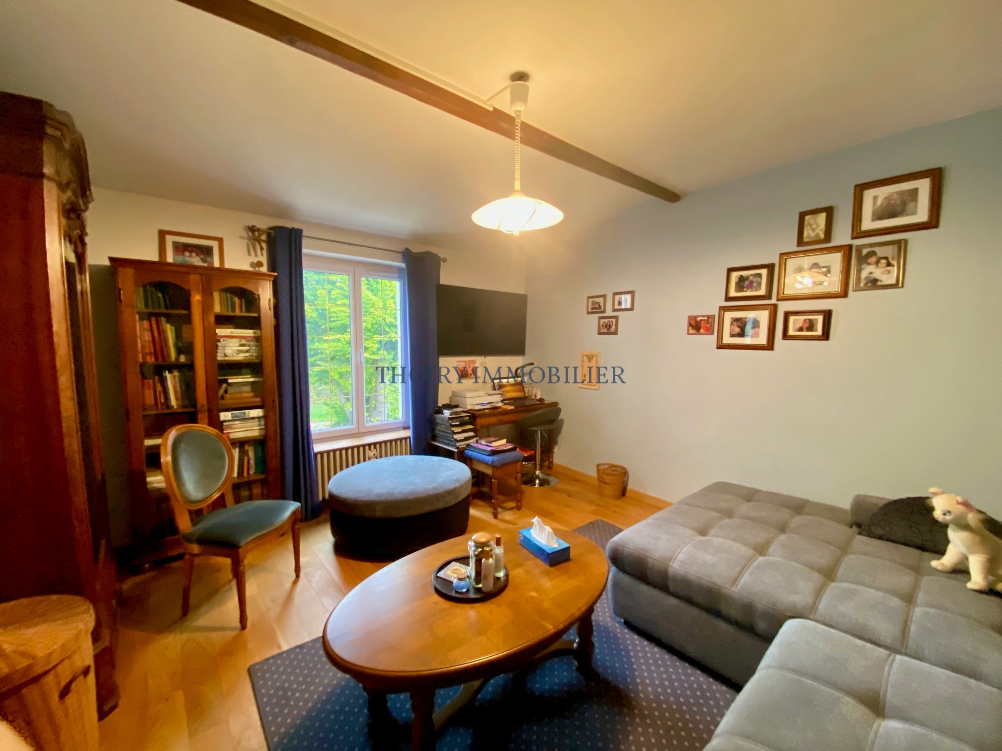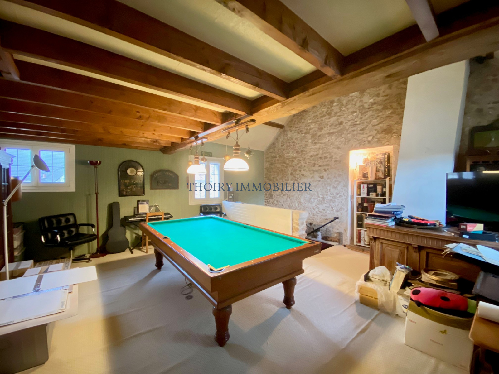 Par un 2 ème escalier de l'autre coté de la maison, au 1er étage: Salle de billard avec plafond cathédrale (4ème chambre possible) et bureau en mezzanine avec accès vers le grenier aménageable d'environ 40 m².